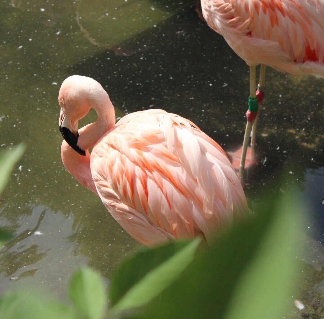 以前動物園で撮ったフラミンゴ。陽に当たって気持ちよさそうにも見えるし、何かを憂いているようにも見えます