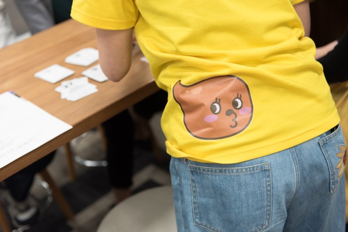 なんだかのんきなTシャツに見えますが、おしりにちゃんとウンログくんがくるように、精巧に計算された機能性Tシャツなのだそうです。