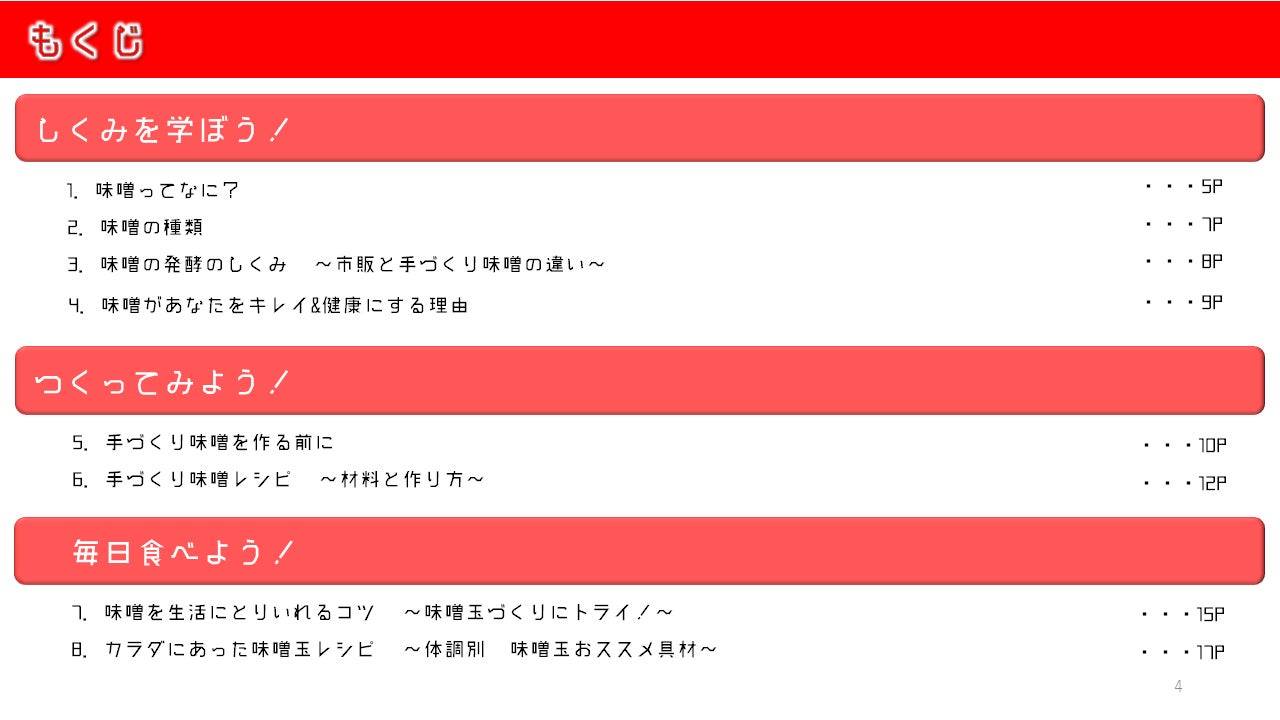 というわけで、今回は手作りミニ冊子PDF「世界一かんたんなみそづくりの本」の目次を公開!!
