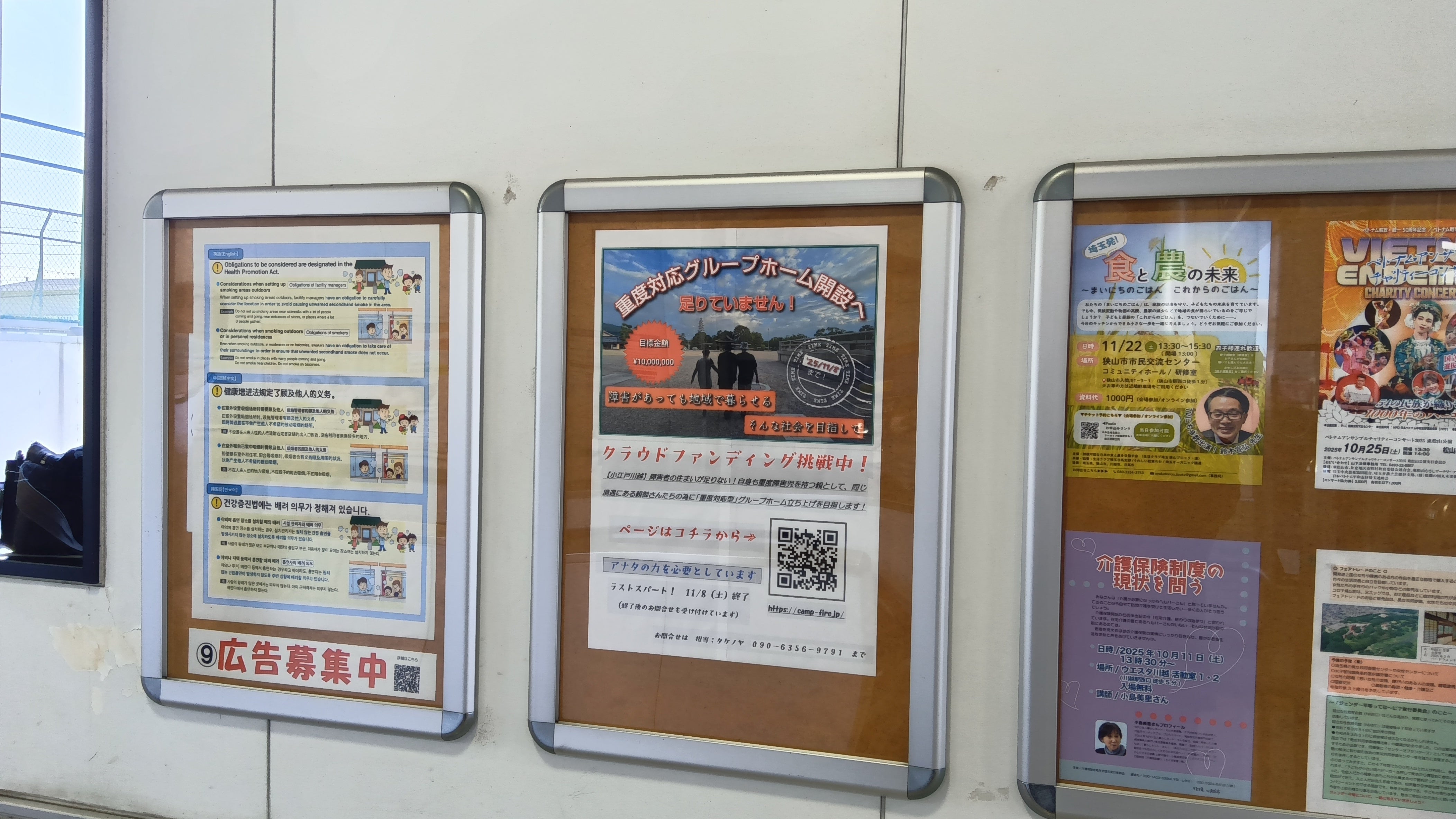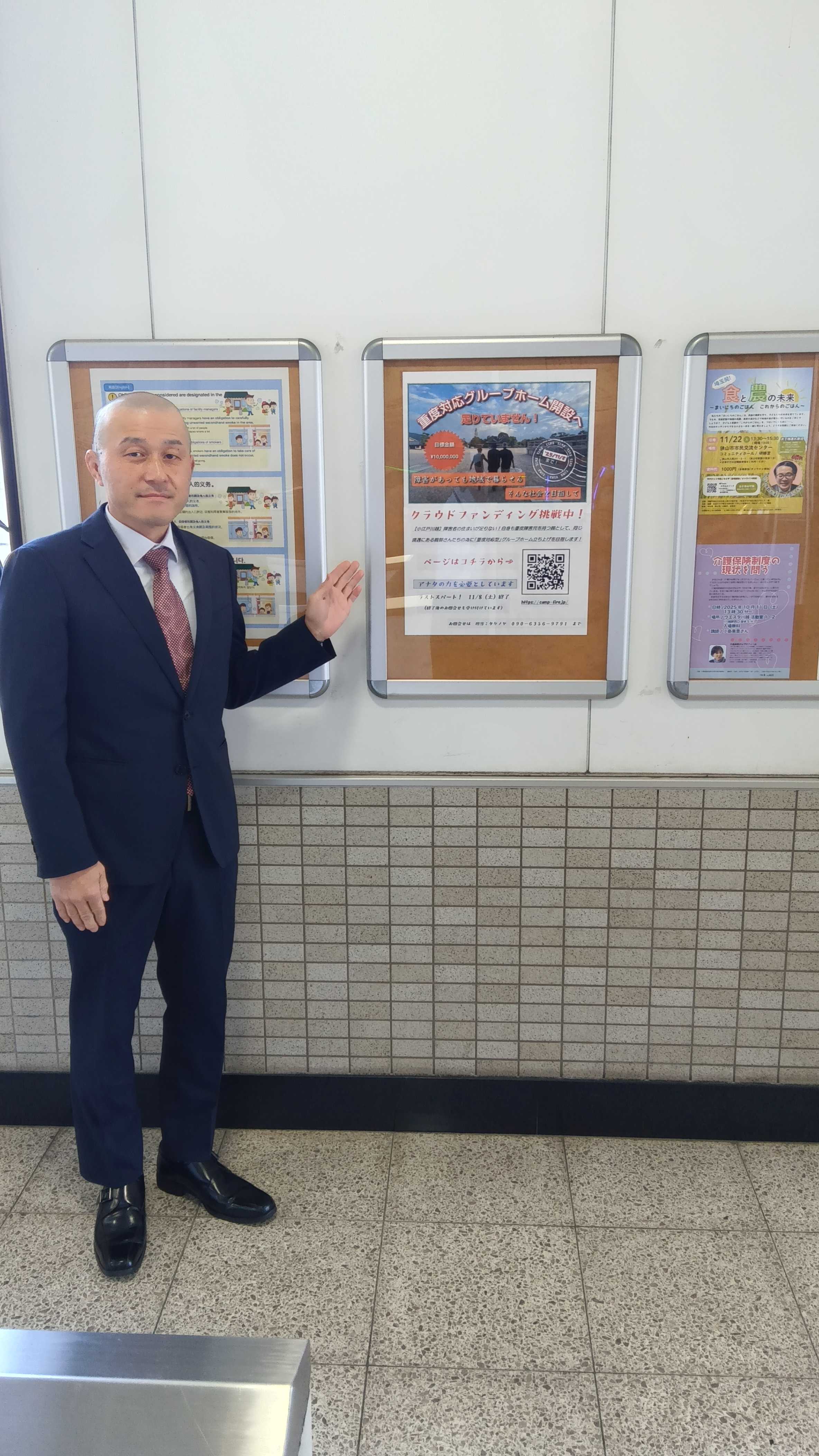 本日、川越市内の「霞ヶ関駅内の自由通路」にポスターを掲示していただきました!