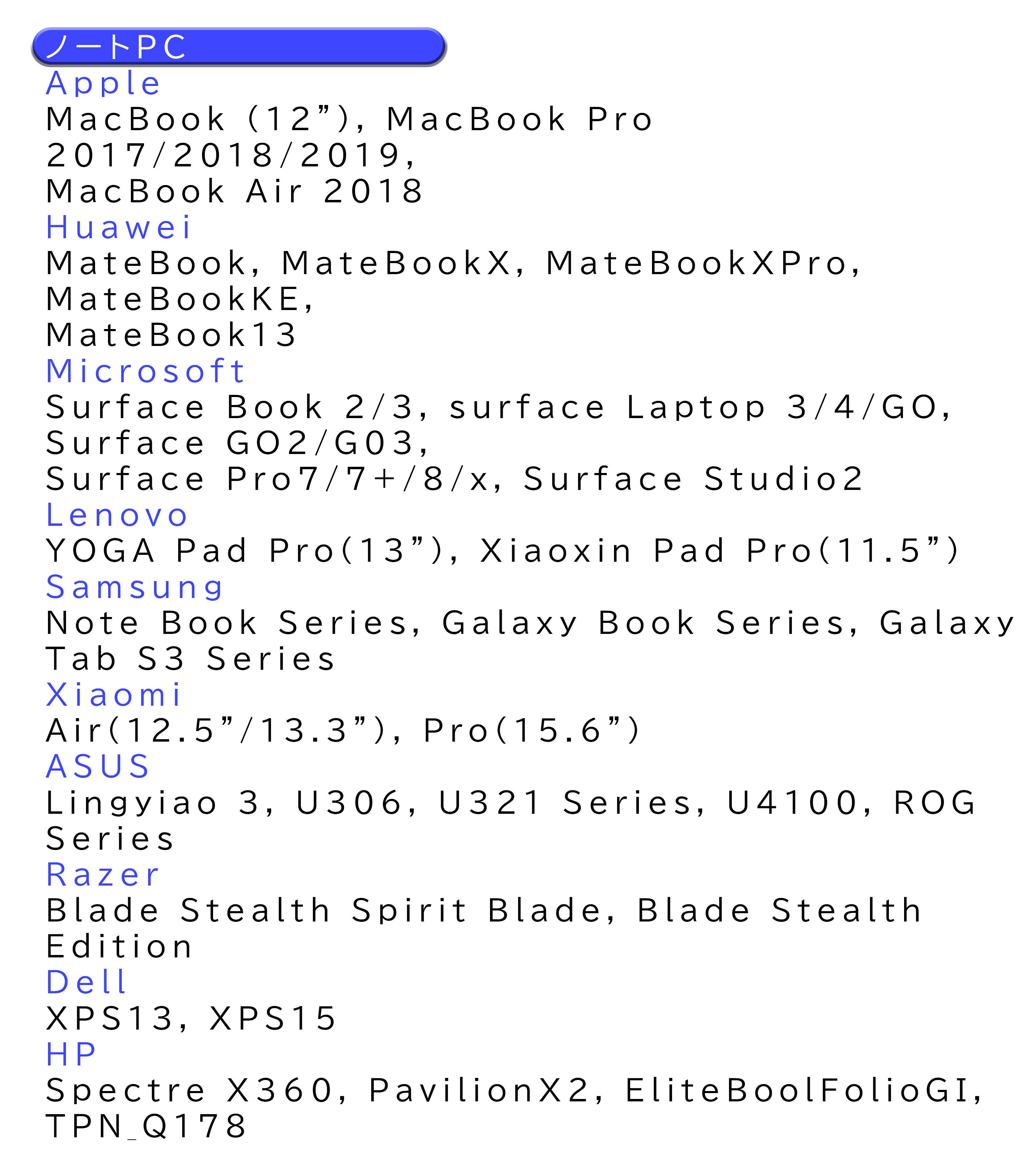 A:本製品をご使用いただくには、お使いのデバイスが有線による映像出力(DisplayPort Alternate Mode)に対応しているType-Cポートを搭載している必要があります。※電力供給(PD)への対応は必須ではありません。