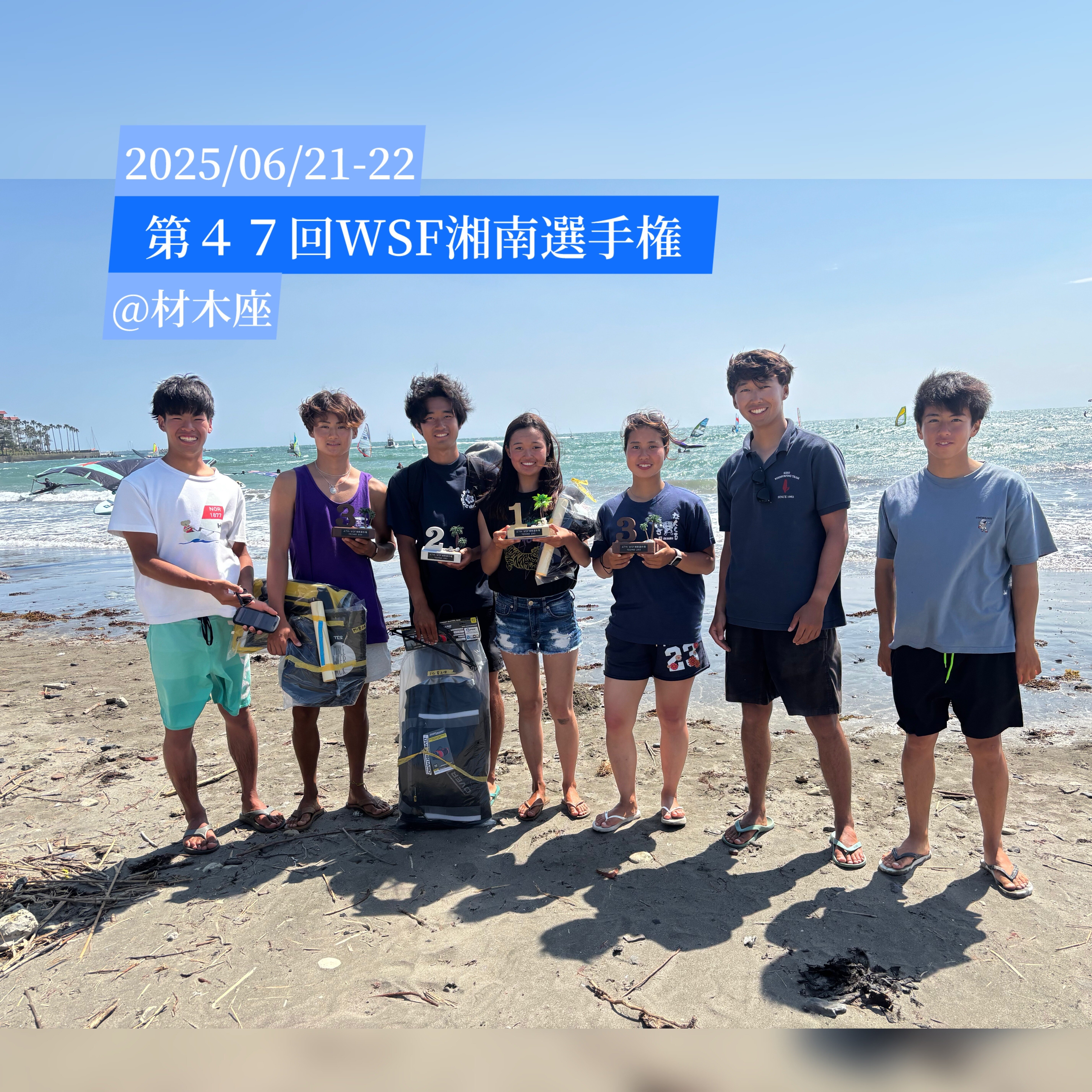 2025/06/24 18:082025年6月21日から22日にかけて鎌倉・材木座にて第47回WSF湘南選手権が開催され、NTからは10-16 片山雄仁 (関西学院大学4年)12-2 古場元(京都大学4年)12-25 星野聖和 (京都大学4年)15-11 橋本龍人 (慶應義塾大学4年)22-1 廣瀬こころ(玉川大学4年)46-3 林つぐみ(明治大学2年)49-24青木優斗(横浜市立大学4年)が出場しました。まず、大会運営をしてくださった湘南選手権実行委員会の皆様、JWA日本ウインドサーフィン協会様、またご協力いただいた鎌倉漁業協同組合様、鎌倉マリンスポーツ連盟様、NPOチャレンジスポーツクラブ様、セブンシーズ様、ありがとうございました。今大会は1日目に中強風〜中風で4本、2日目は悪天候によりノーレースとなり、計4レースを消化しました。その結果、T293メンズクラスで49-24青木優斗 (横浜市立大学4年)が2位、10-16片山雄仁(関西学院大学4年)が3位入賞、T293レディースクラスで22-1廣瀬こころ(玉川大学4年)が優勝、46-3林つぐみ(明治大学2年)が3位入賞を果たしました!次のドリームカップに向けてたくさんの入賞者を出せるよう、各自練習に励みます!以下、リザルトとコメントです。【リザルト】T293メンズ2.青木優斗(横浜市立大学4年)3.片山雄仁(関西学院大学4年)11.古場元(京都大学4年)22.星野聖和(京都大学4年)31.橋本龍人(慶應義塾大学4年)T293レディース1.廣瀬こころ(玉川大学4年)3.林つぐみ(明治大学2年)【レポート】by Yuto Aokiレースはロングレグで行われ、左から強いブローが下りてきていました。そのなかでマークの位置をしっかり把握し、どのブローをどう使うかうまく選択する必要がありました。スタートラインはやや下有利、上マークは若干左側にあったため、スタートは下に寄せる必要があったと思います。また、メンズは150艇を超えるスタートでスタートラインが長く、全レースブラックスタートだったこともあり、うまくラインを把握しておくことも重要でした。【お願い】現在、世界選手権出場のためのクラウドファンディングをキャンプファイヤーにて行っています!ご支援はもちろんのこと、お知り合いや関係者の方への拡散・共有をよろしくお願いいたします! もっと見る