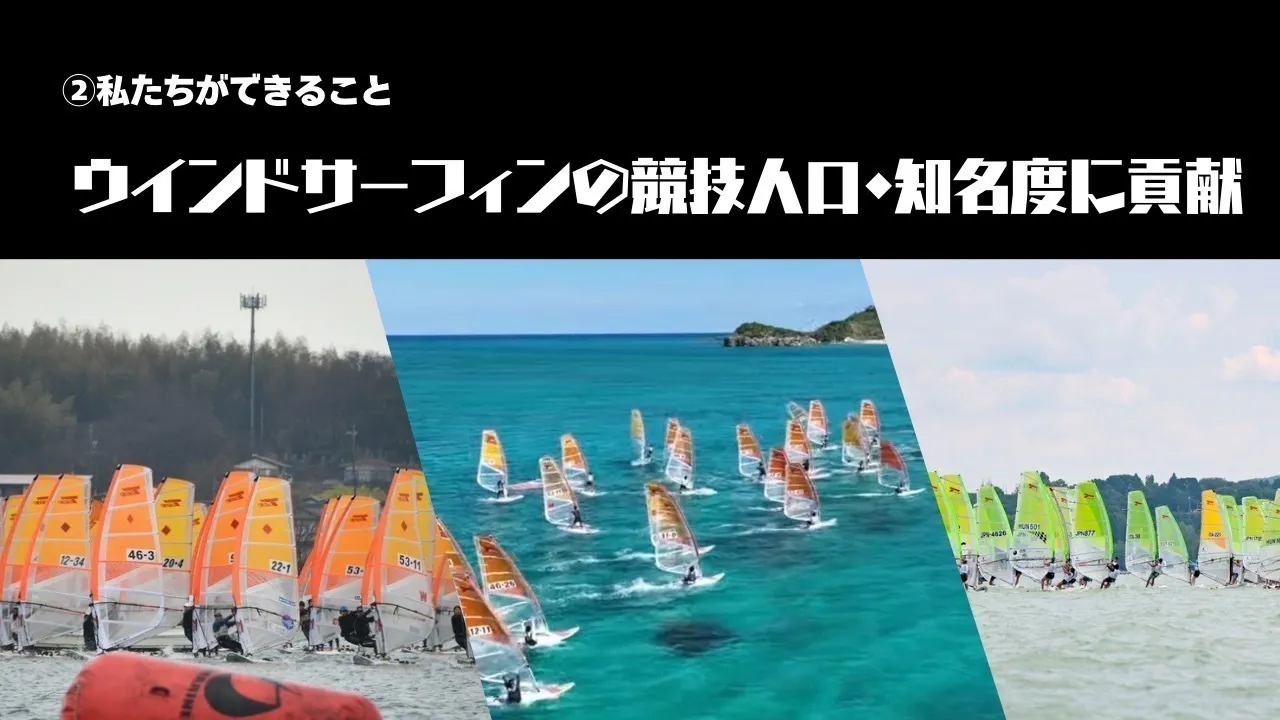 ウィンドサーフィンは、海と風と一体になる、自然の魅力を全身で感じられるスポーツです。しかし、まだまだ日本では競技人口が少なく、中々その魅力が広く知られていないのが現状です。私たちは今回の世界選手権を通して、一人でも多くの方にウィンドサーフィンの魅力を発信したいと考えております。