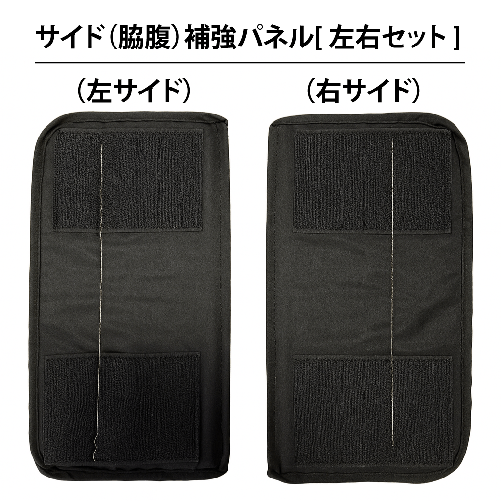 この脇腹部分の防護をより重視されるお客様の声を受けて、面ファスナーで簡単に後付け・取り外しが可能な「サイドパネル」をオプションとしてご用意しました。