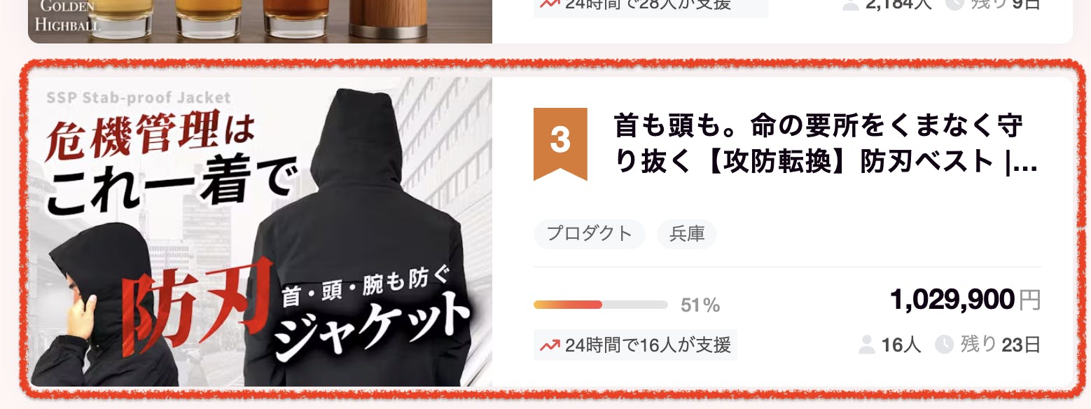 公開4時間で支援総額100万円を達成し、プロダクト部門でも3位へランクインいたしました!