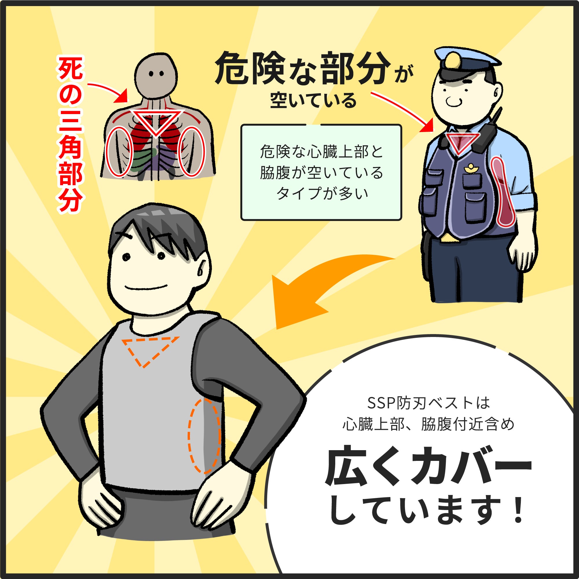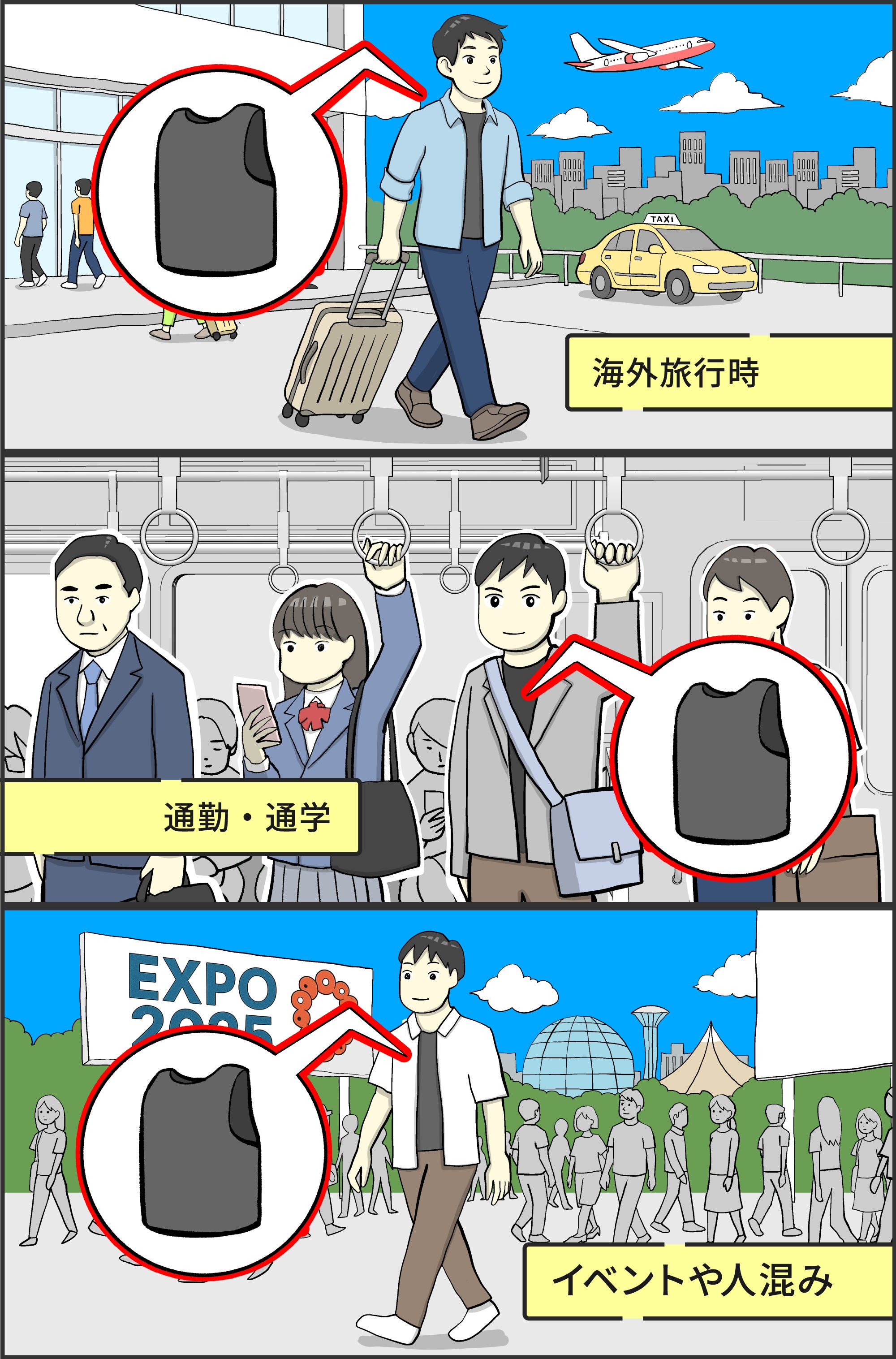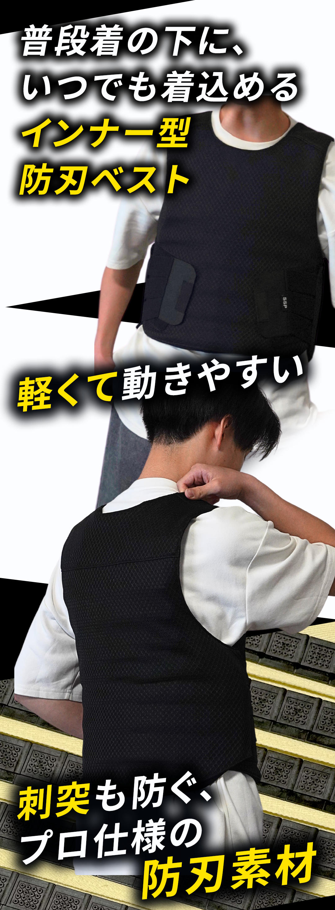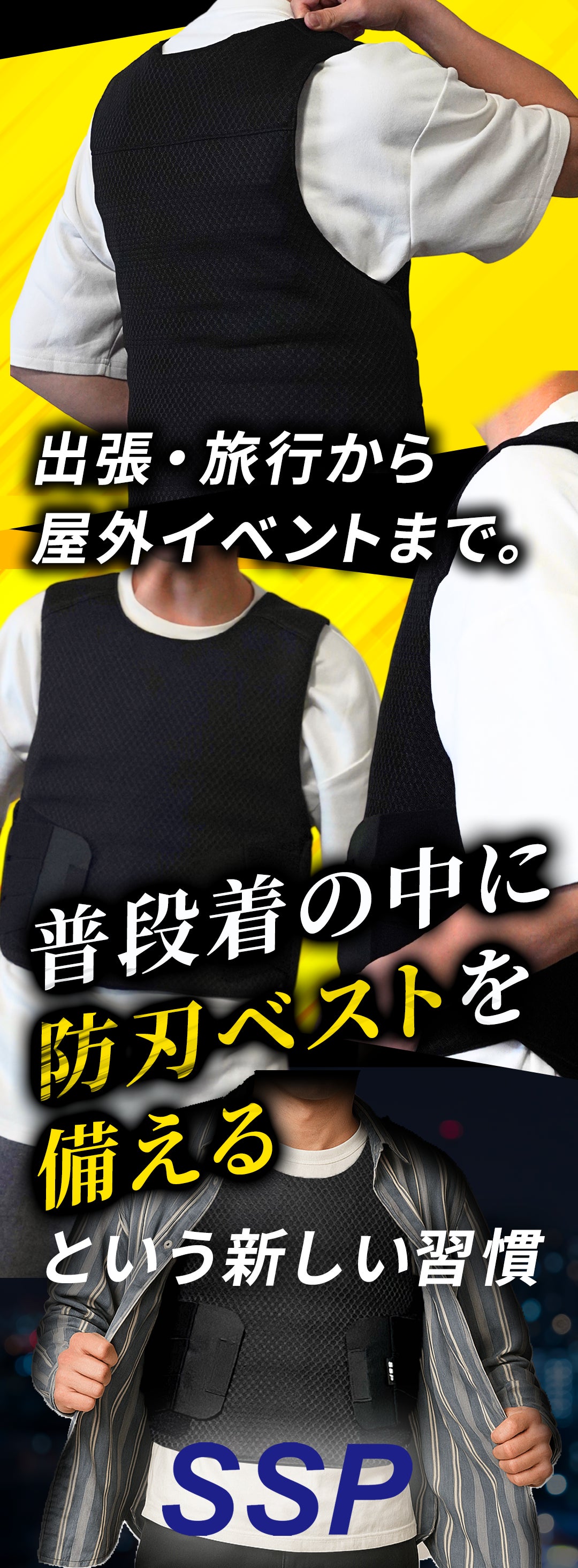 このような「突然の刃物による暴力」は防ぐことが非常に難しく、私たちは「防刃ベストの着用」がひとつの選択肢と考えます。