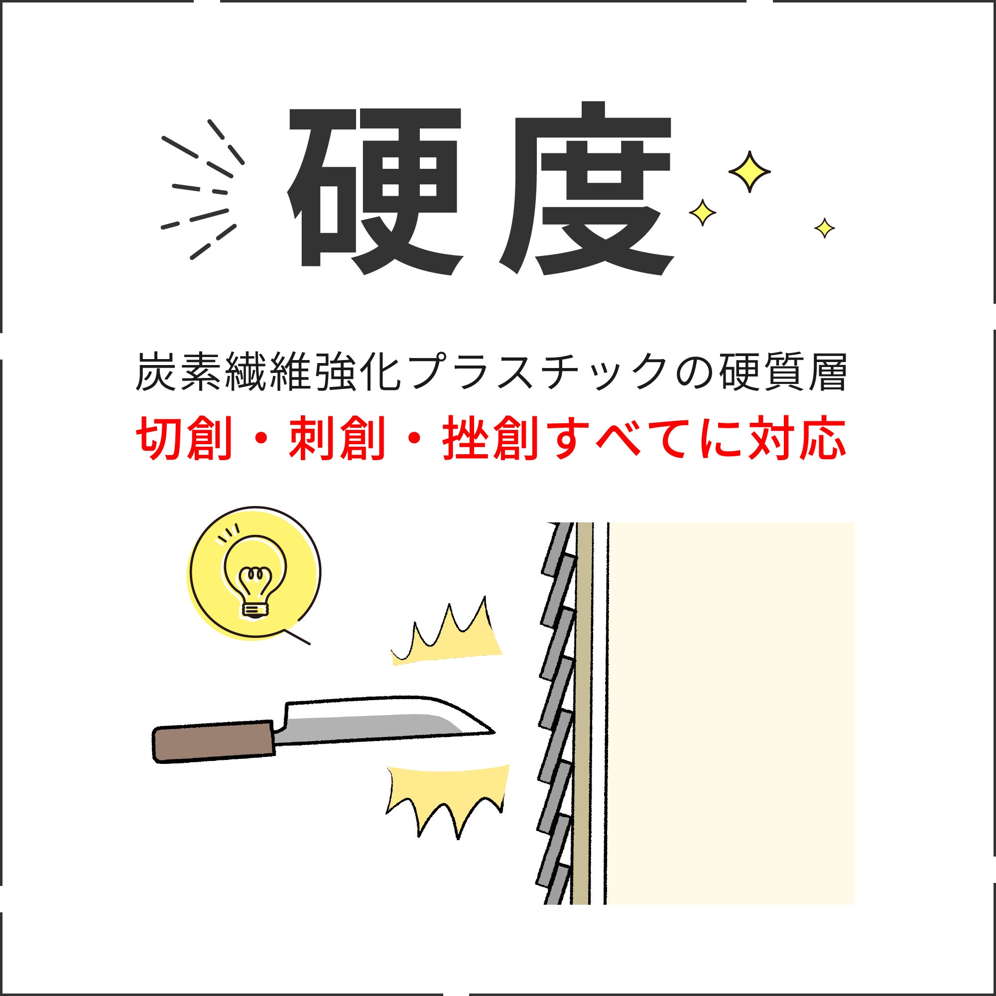 言い換えると「硬い刃物から守るにはある程度の硬い層が必要」です。