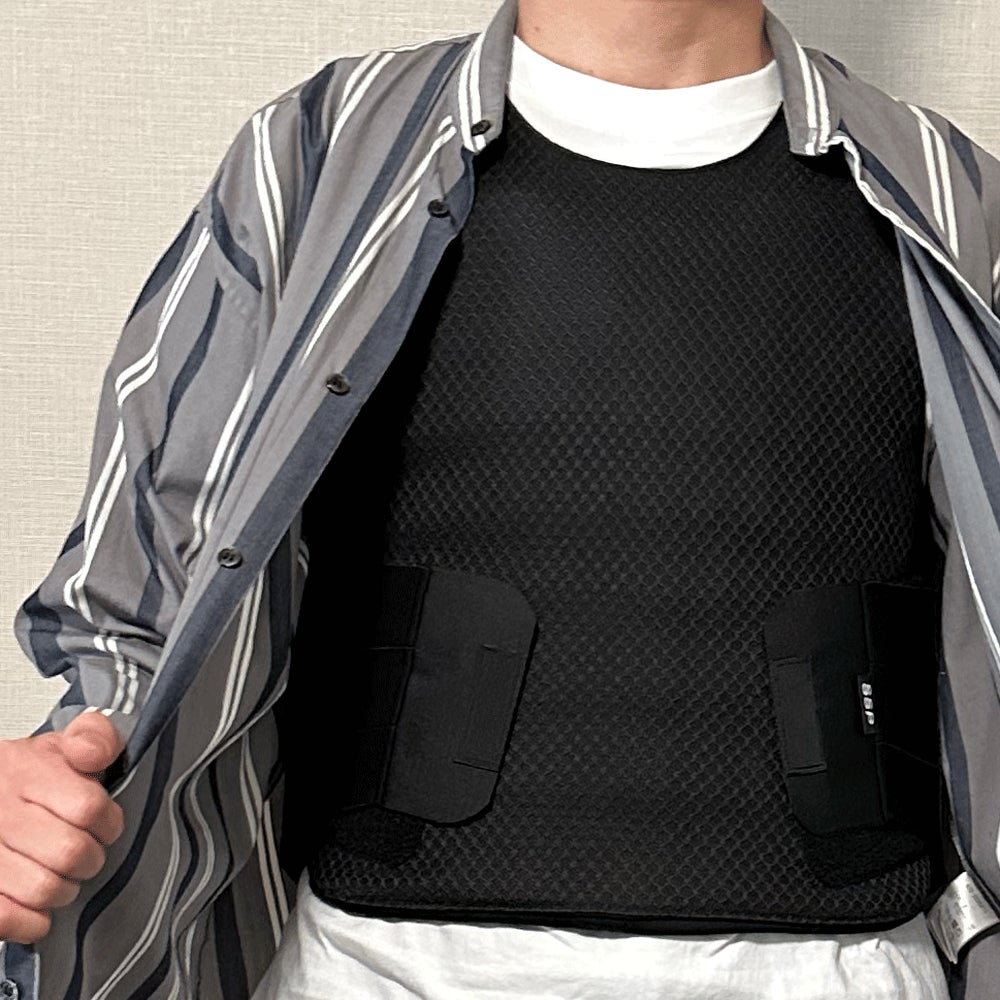しかし従来の本格的な防刃ベストは、重く、硬く、目立つため現実的には難しい選択肢でした。