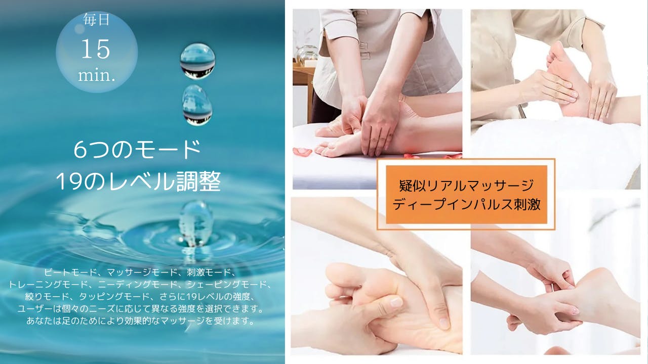 フットマッサージャーは6つのモードに19レベルの強さ調整