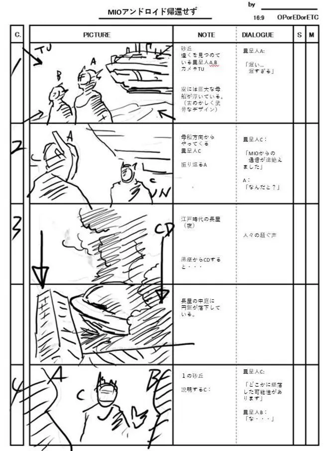現在想定しているトップシーンのコンテを特別公開!(実際は変更になる可能性もあります)
