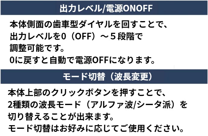 歯車をクリックするだけで、2つの刺激モード(アルファ波/シータ波)を切り替え可能。