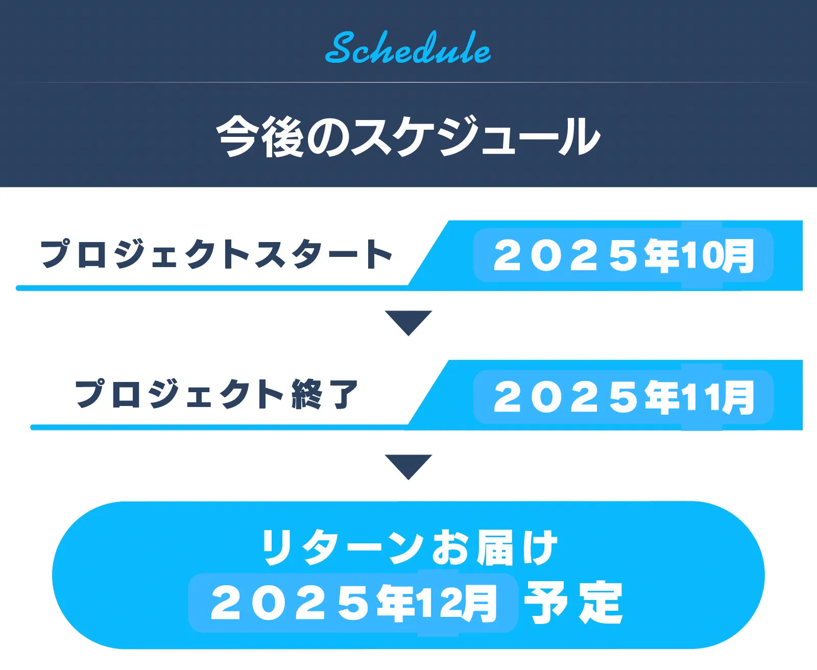 本文中に記載させていただいたスケジュールは、あくまでプロジェクト公開時点の予定です。ご支援の性質上、配送遅延のおそれがございます。原則として、配送遅延に伴うご支援のキャンセルはできませんが、リターン配送予定月から 2ヶ月 を超えた場合には、希望者に限りキャンセルにて対応させていただきます。