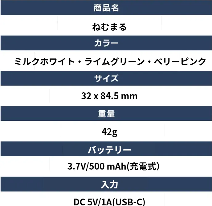 「ねむまる」は、わずか42gの手のひらサイズで、丸みのあるデザインは握るだけで心地よく、どこでも“整える時間”を持つことができます。