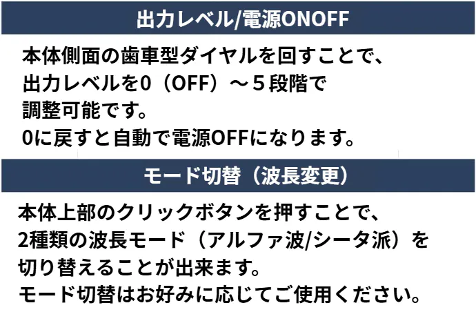 電源ON/OFFと出力強度は、ダイヤルをくるっと回すだけ。