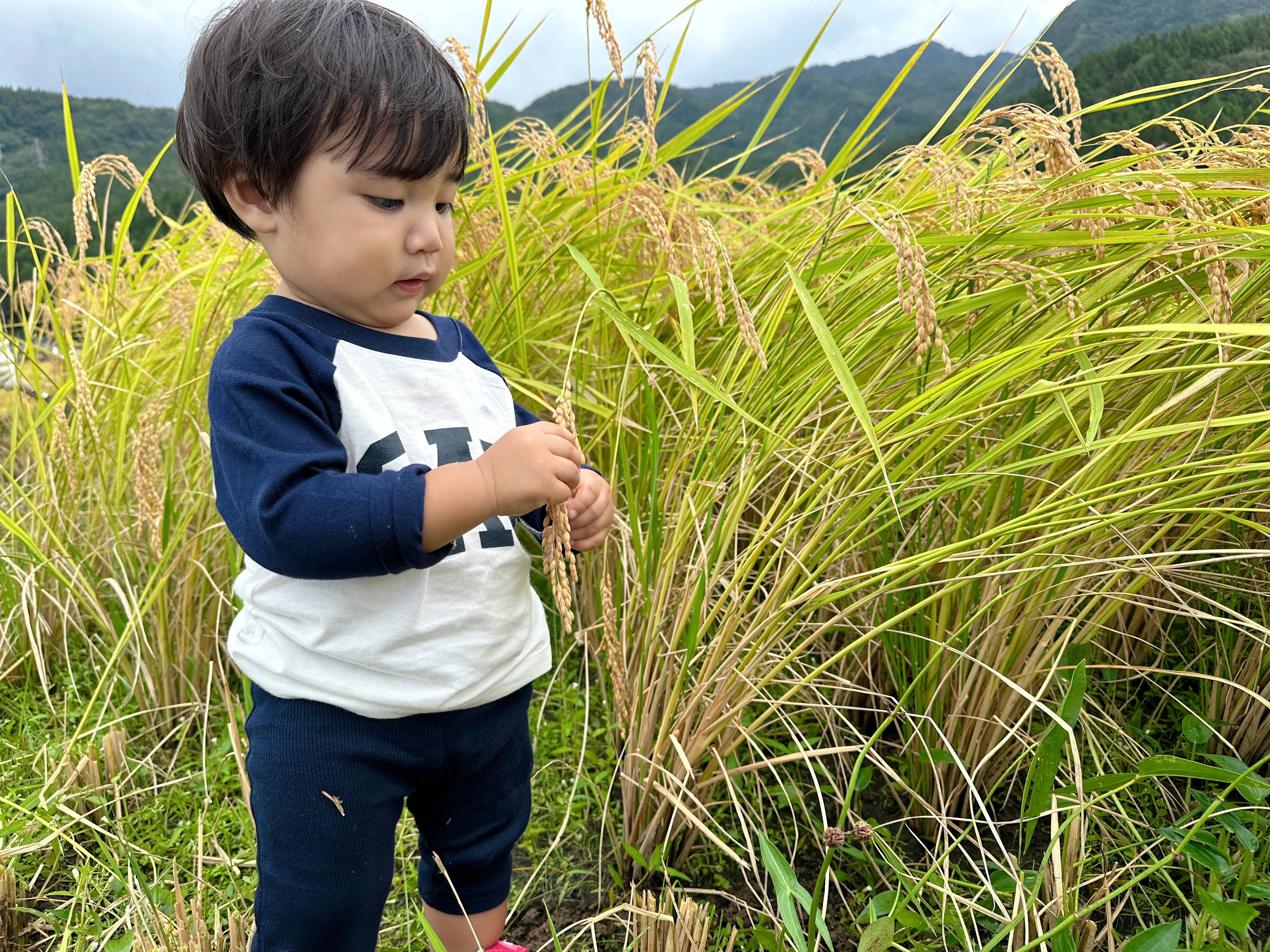 今では家族ぐるみのふるさとになっています。田んぼオーナーとなり、秋の稲刈り中