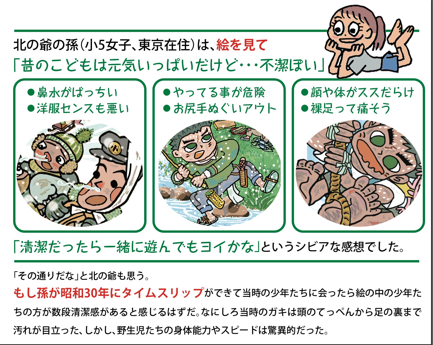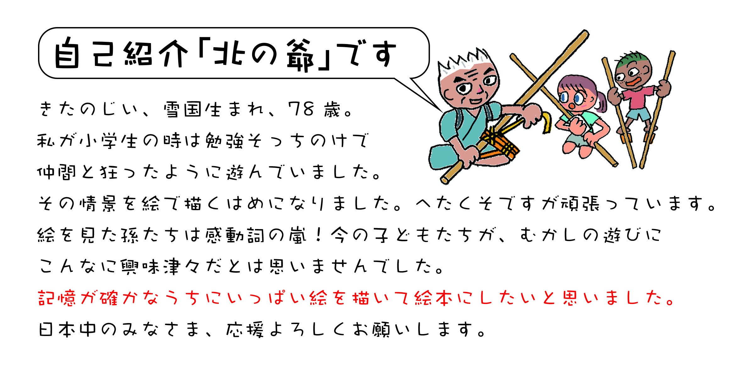 あの時代はもう来ない。ほとんどの人が知らない昭和30年のあの時、あの空間、あの少年たちの遊び-この絵本は今発表しなければ永遠に世に出ない。作者の体力も根気も仕事力も下がってきていますが北の爺は進みます。