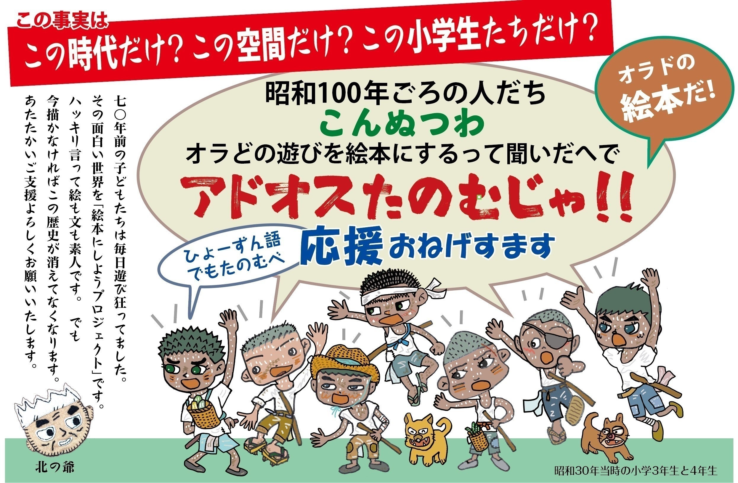 この絵本作成プロジェクト名は【S30の遊びを絵本にしよう】。昭和30年の子どもたちのワイルドな遊びの歴史を絵本にします。赤ちゃんから100歳以上まで楽しめる実話ファンタジーな絵本を日本中にお届けしたい・・・です。展望-ネクストプロジェクトはこの絵本のPART1とPARE2を世界中に届けたい。