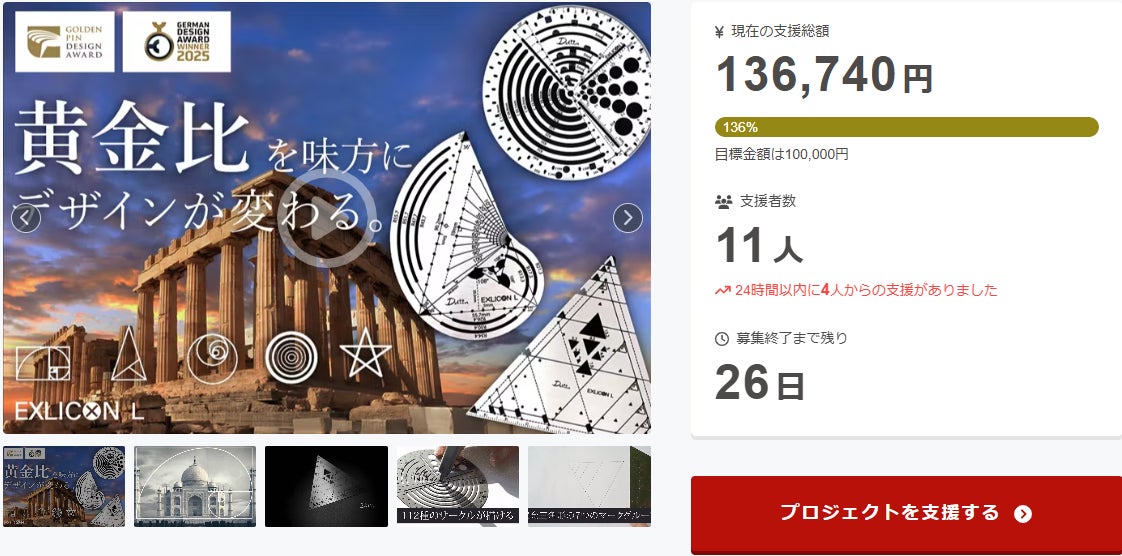 この度は「黄金比を簡単かつ正確に描く!プロフェッショナル仕様の多機能スケール」に支援頂き誠にありがとうございます!