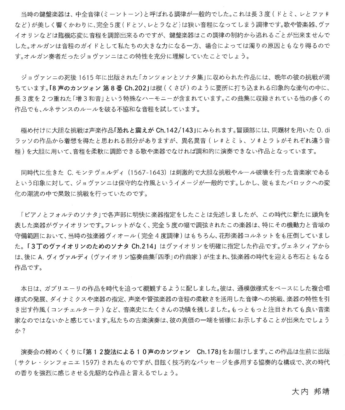 会場でお客様に精錬されたサウンドを浴びていただくことも私たちの使命として大切にしていますが、同時にガブリエーリという音楽家の生涯と作品をストーリーとして感じていただくことも重要視しています。1編の小説を読むかのように、映画を観るかのように楽しんでいただけたらこんなに嬉しいことはありません。