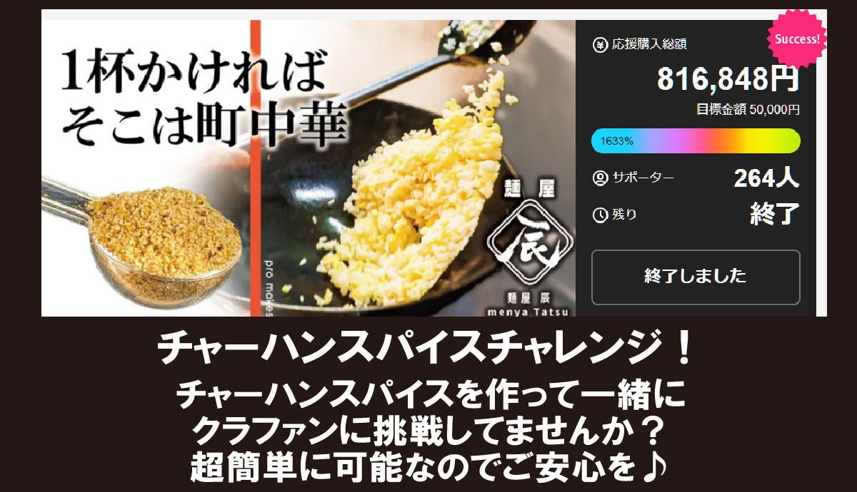 2025/07/01 11:36応援ありがとうございました!ラーメン茶漬け頑張りましたwww発送なのですが早めにお届けできそうですので商品到着までもうしばらくお待ちください。★★★★★★★★★簡単クラウドファンディング挑戦!チャーハンスパイスにチャレンジして頂ける飲食店募集中!ご紹介もお待ちしております!http://www.connectsystem.net/%E3%83%81%E3%83%A3%E3%83%BC%E3%83%8F%E3%83%B3%E3%83%81%E3%83%A3%E3%83%AC%E3%83%B3%E3%82%B8%EF%BC%81/コネクトシステム代表nishide:ya責任者西出敬-------------------- もっと見る