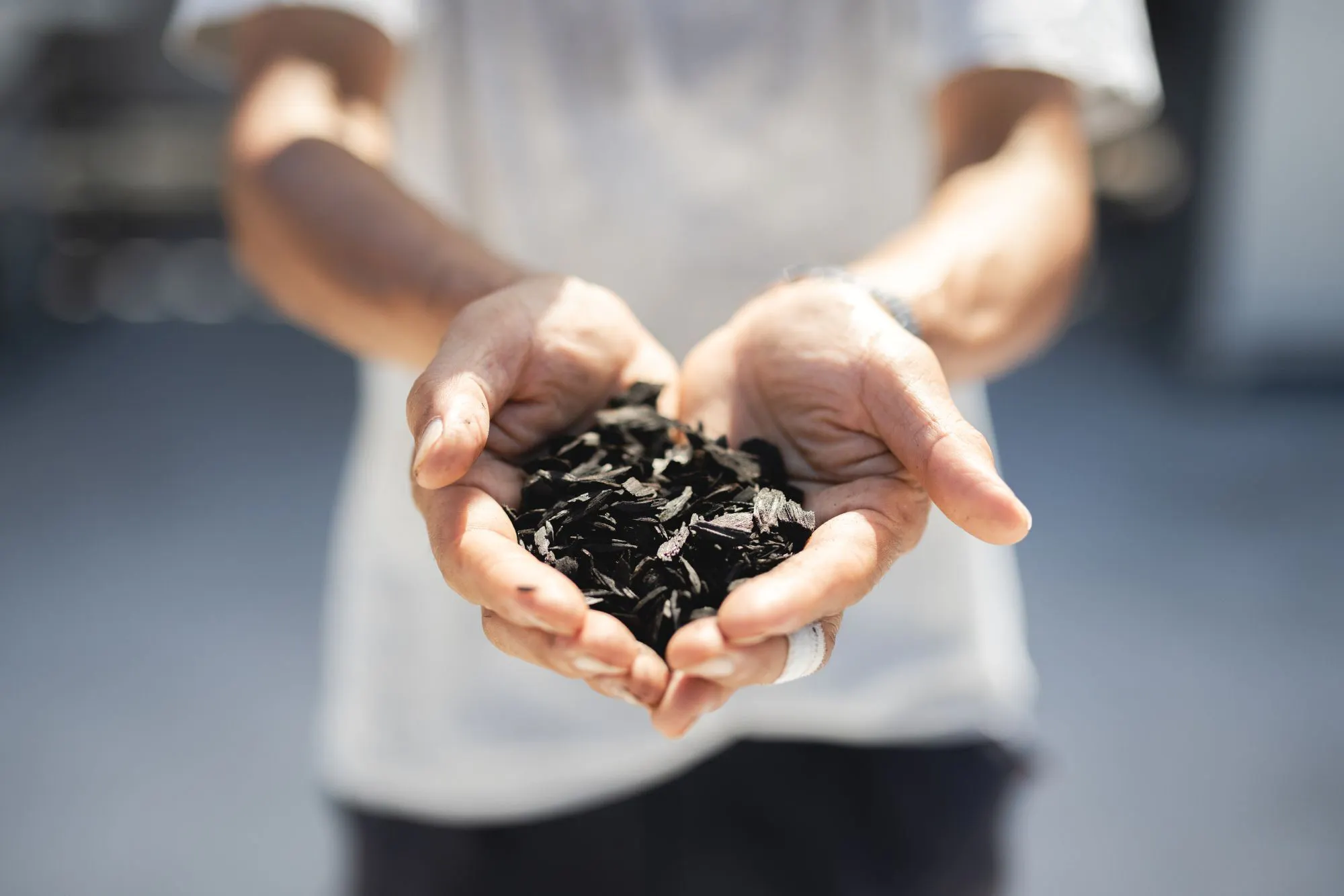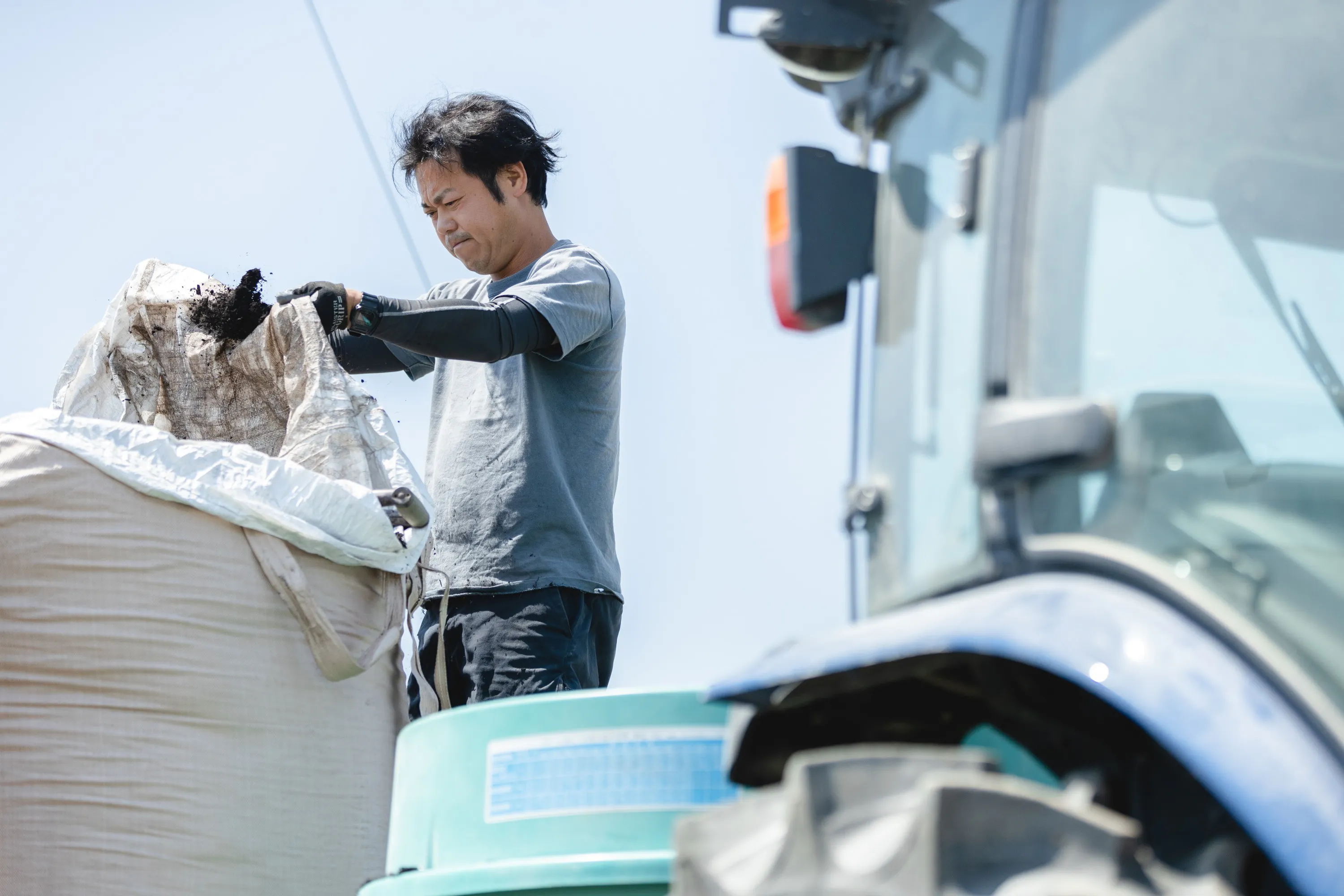 水田にはクスノキのチップから作られたバイオ炭をすき込んでいます。バイオ炭を利用することで土壌の通気性や保水性を向上させます。特に粘土質の水田においては、排水性が良くなることで根の発育が促進され、稲の生育が安定すると言われています。