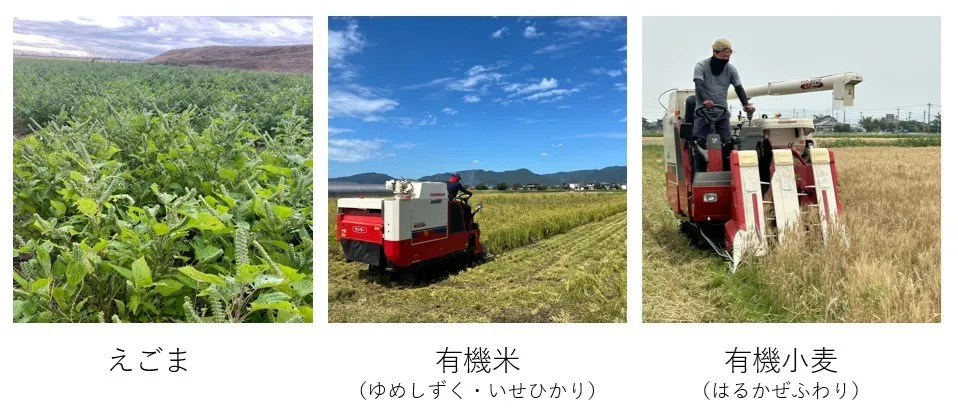 当初は環境負荷の少ない農法を実践したいと「えごま」専門で就農し、えごま葉や実の生産、えごま油の製造販売に取り組み、3年前から小麦やお米の栽培も始めました。