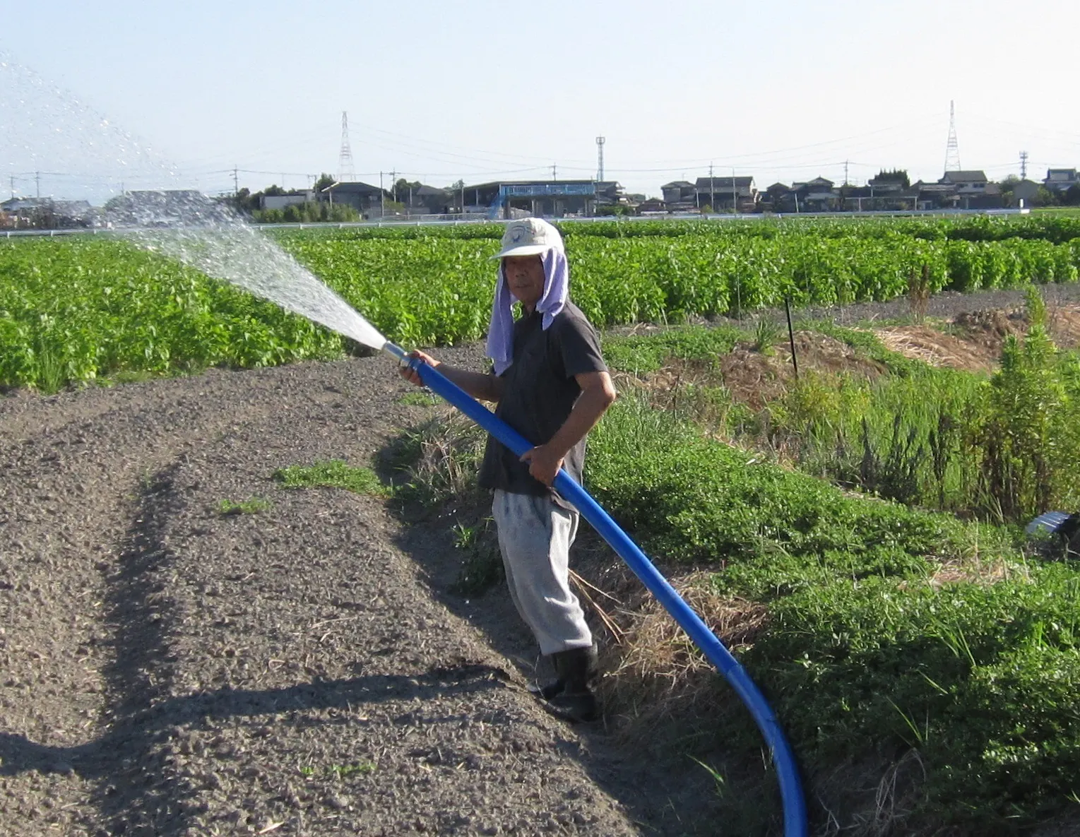 その姿を目の前で見ていて、自分がやらなければ、誰がやる!という気持ちになりました。父は奇跡的に回復し元気になりましたが無理ができないため、7年前に飲食店をたたんで、本格的に農業に取り組むようになりました。元気にえごまに水をまく父・彰義父の想いを継いで、7年。