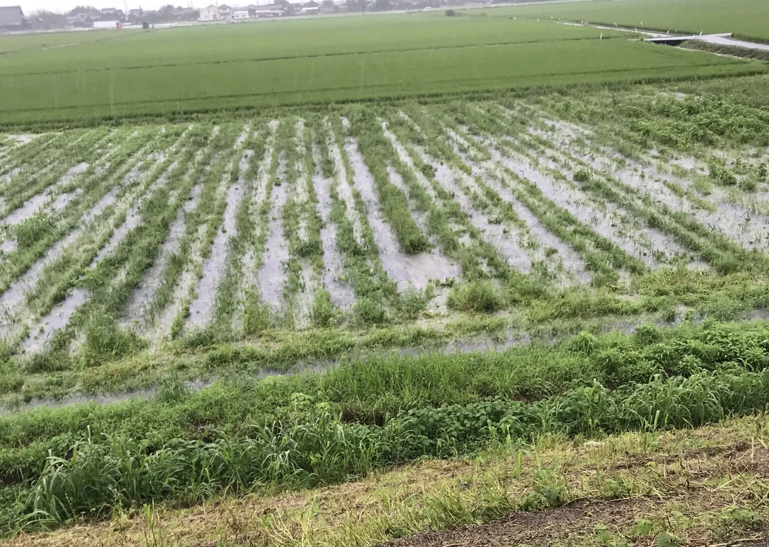 水に浸かったえごま畑・なかなか水が引かない状態が続いた