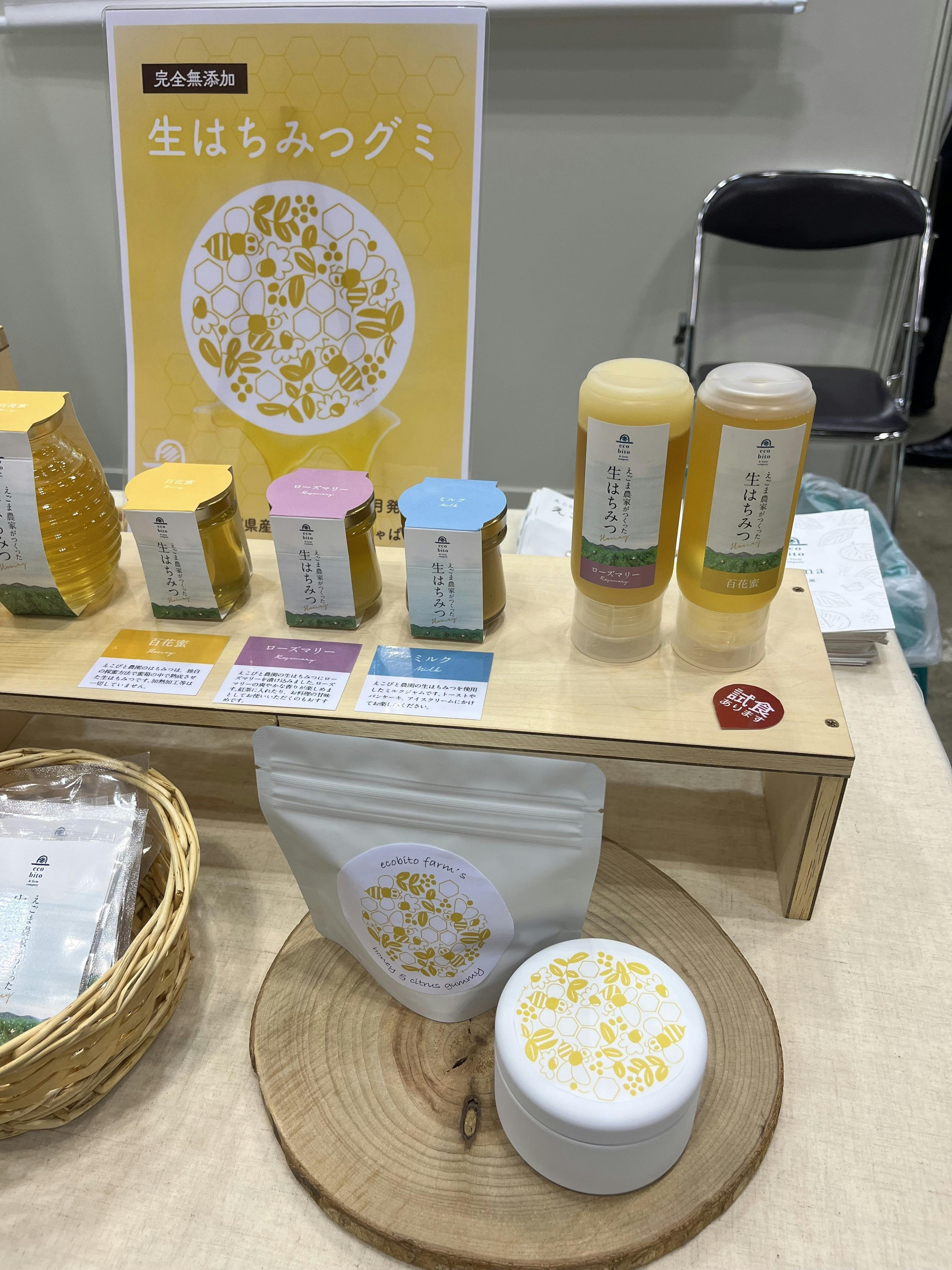 今回は、お米の展示はなく(予約でいっぱいなので)えごま油とはちみつのみPRしました。10月に新発売を予定している「生はちみつグミ」を試験的に展示していたのですが、かなり人気でした!着色料・香料・増粘剤無添加にこだわってつくりました。悩ましいのは価格ですが、、、できるだけ手に取りやすい価格に落ち着けたいと思っています。