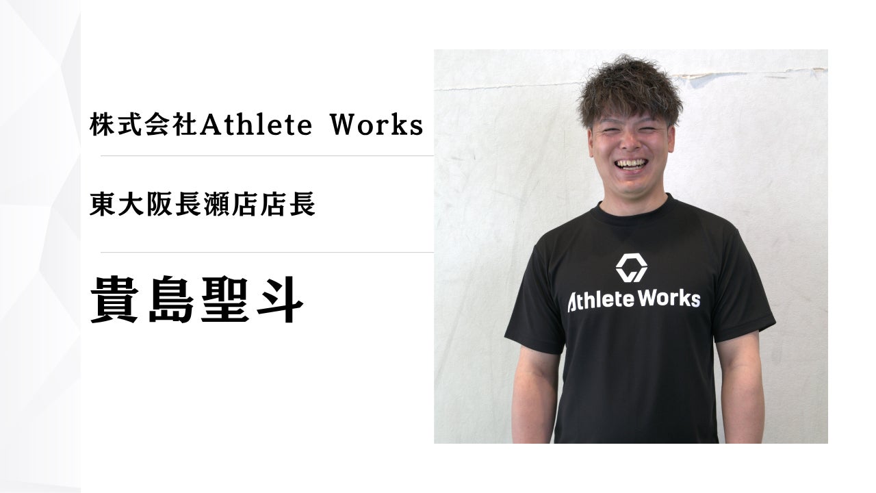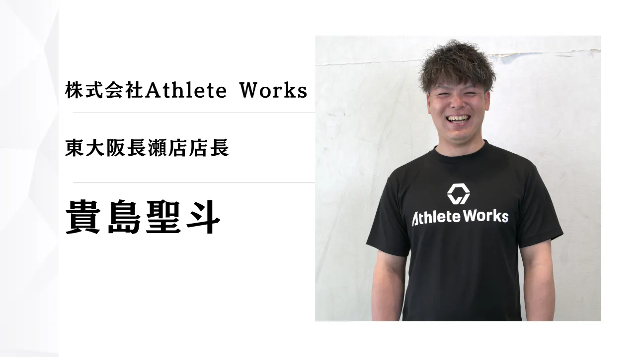 はじめまして。アスリートワークス東大阪長瀬店の店長を務めさせていただく、貴島聖斗(きじま まさと)です。