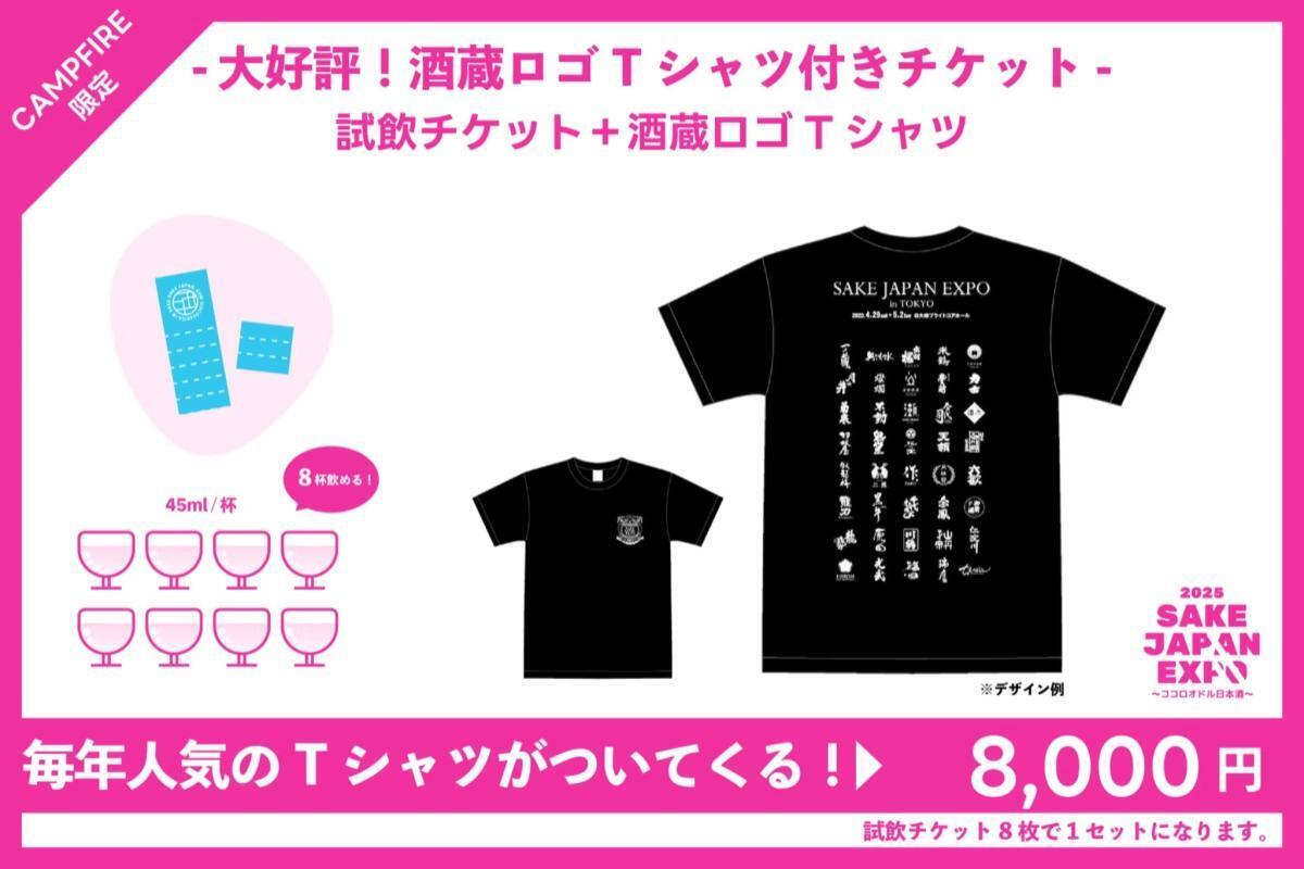 試飲チケットが8枚ついた参加チケットや、グループ割や毎年大人気の出展酒蔵様のロゴ付きTシャツなどCAMPFIRE限定のリターンをご用意いたしました!