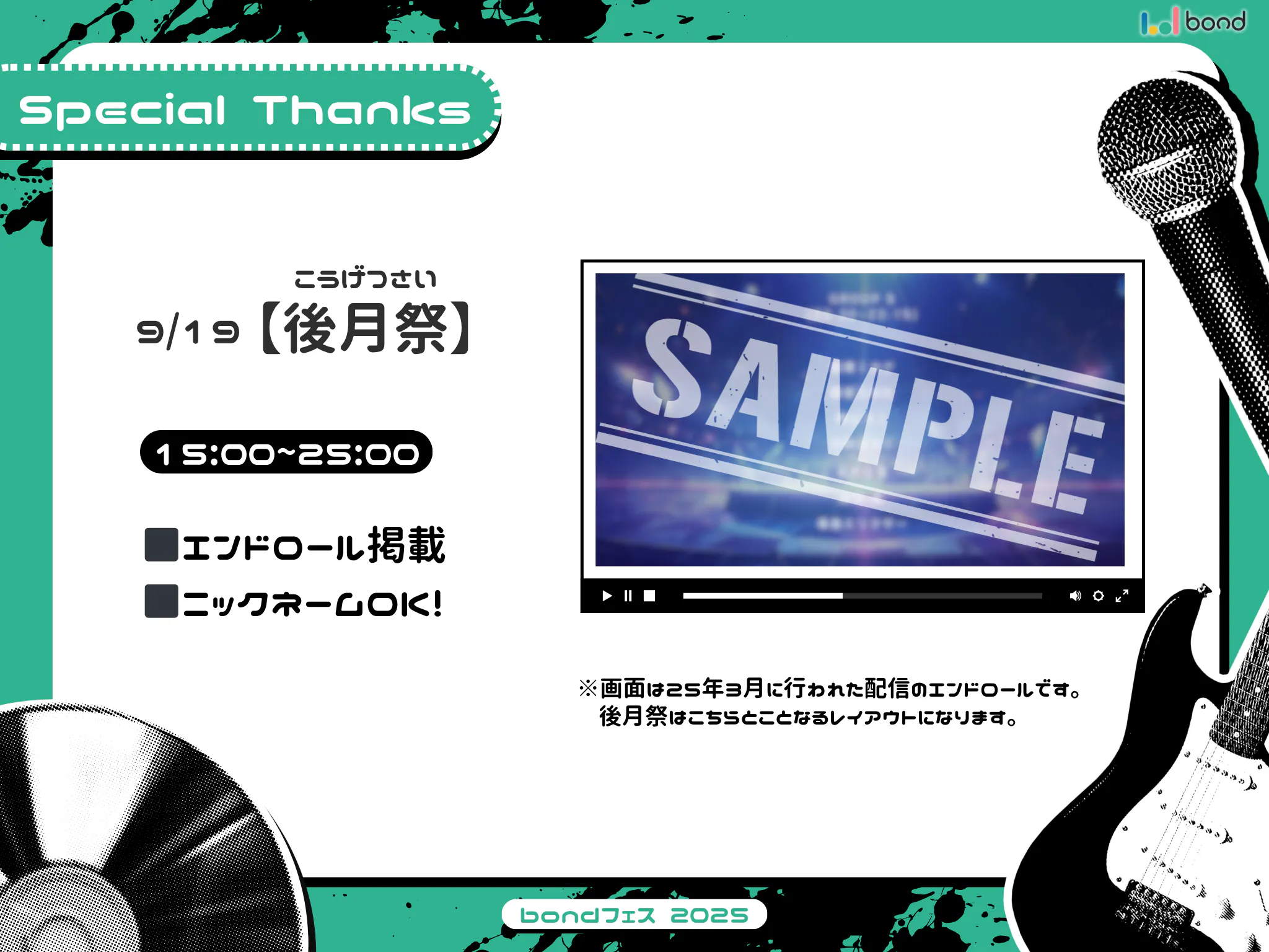 ・公式Youtube配信のエンドロールにて、Special Thanksとしてお名前(ニックネーム可能)を掲載いたします。