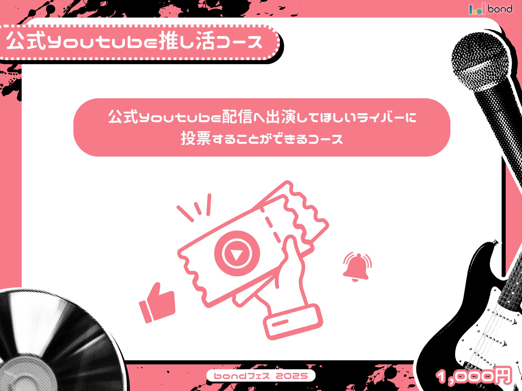 公式Youtube配信の投票枠出演ライバーに投票ができるコースです。