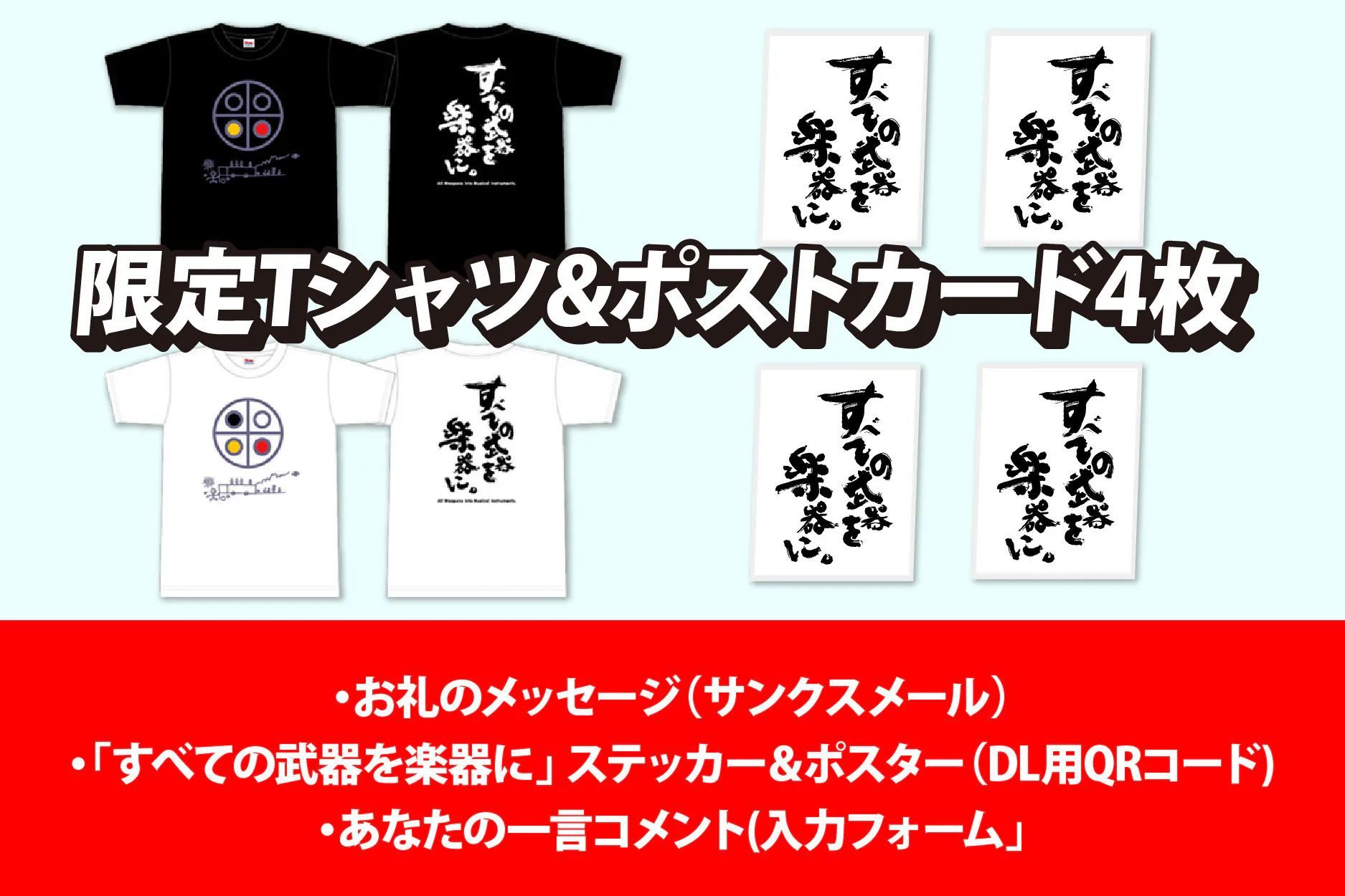 ※サンクスメッセージと、「すべての武器を楽器に」ステッカー&ポスターのダウンロードコードは、全てのリターンに含まれております。入場チケットは付きません。