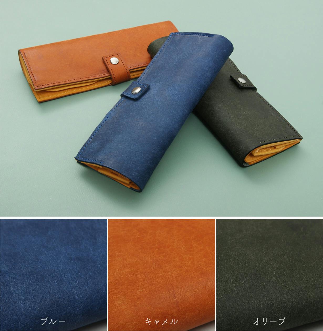 鮮やかな「ブルー」、明るい「キャメル」、落ち着いた「オリーブ」の3色をご用意しました。どのカラーも魅力的なエイジングが楽しめます。
