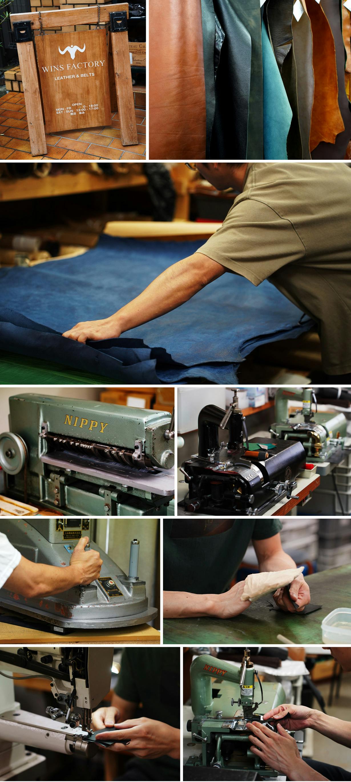 ものづくりが原点にある東京浅草橋の革屋「ウインズファクトリー」はベルトや革小物の制作の傍ら、 皮革輸入商社としても長いキャリアを誇ります。ヨーロッパの歴史あるタンナーと直接取引をすることで、革本来の風合いを大切にしたイタリアンレザーや、伝統的な製法で作られたイギリス産ブライドルレザーなど、様々な美しい革を扱っています。原皮は食肉用の副産物のみに限定し、環境に配慮した厳しい基準を守る工場との取引をしています。