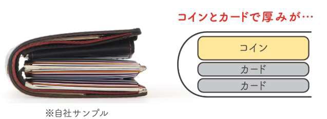 見渡せば世間ではコンパクトな財布が流行っている。でも薄いのはいいけど、カードが数枚しか入らなかったり、コインが出し入れしにくそうだったりというものも多く、横目で眺めながら、容量を変えずに薄くできないかなと考えていました。
