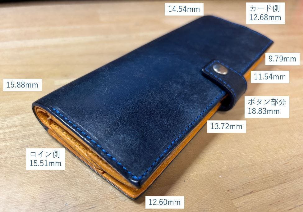 厚みは約15mm。革が馴染んでいるのが分かります。