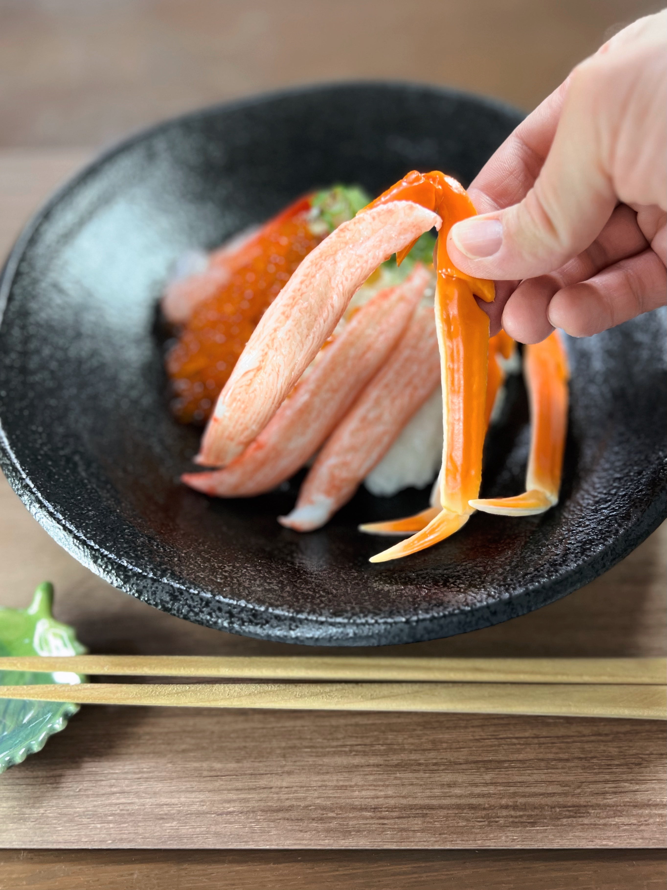 ズワイガニのメスの繊細で上品な食感と、ズワイガニのオスの食べ応えや口いっぱいに広がる旨味。さらに、茹でた直後のみずみずしさや香りを表現した、カニをよく食べている人こそ理解してくれるカニカマです。