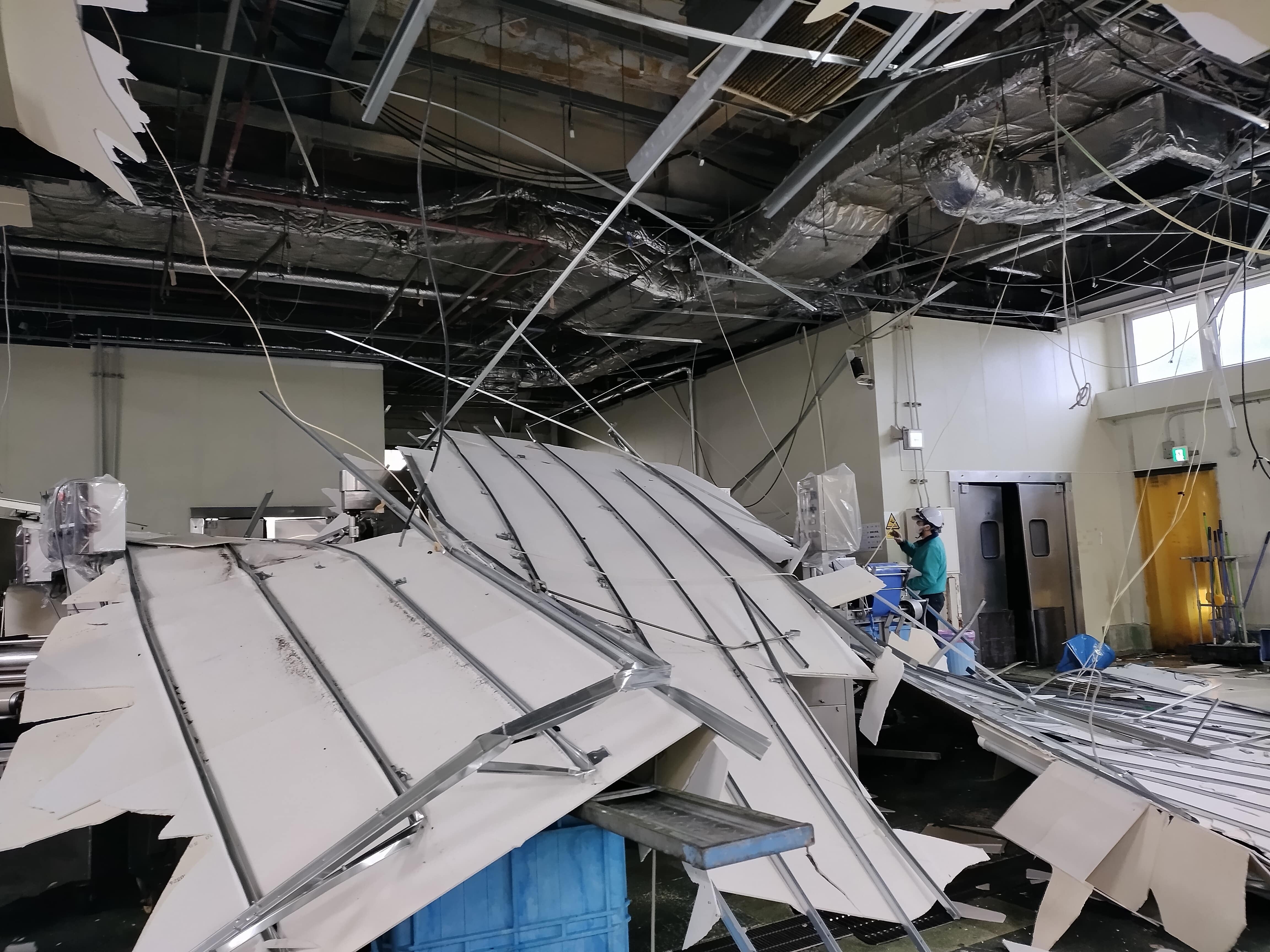 北陸工場の天井が落下、様々な配管が破壊され、半年間製造停止に