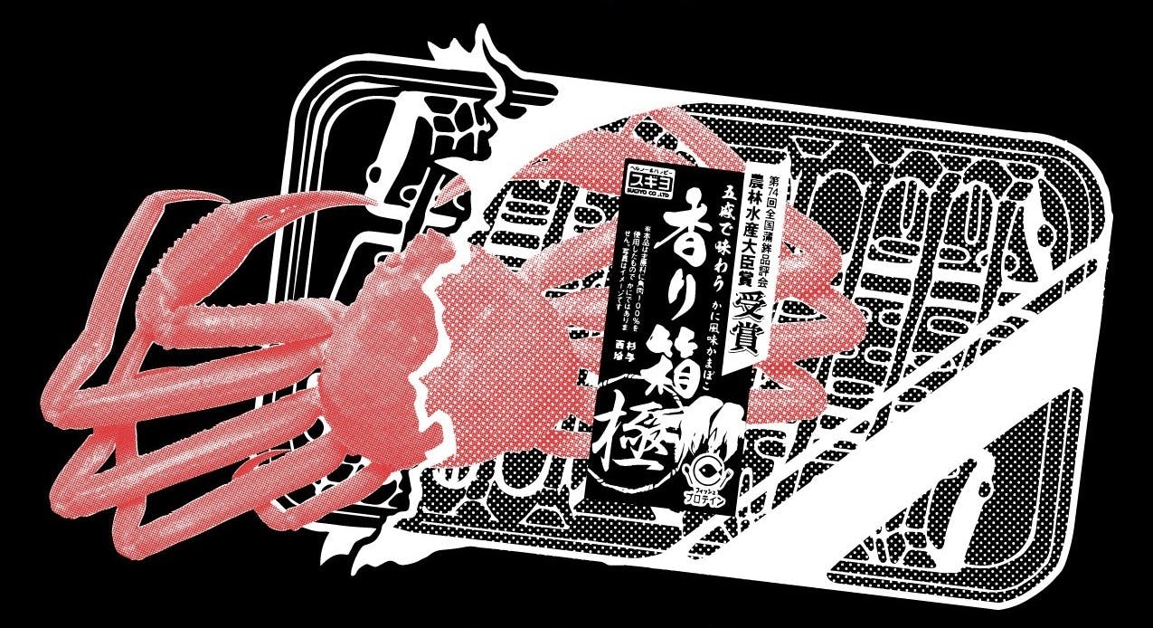 そしてメインビジュアル「香り箱極からでてくるカニ」!実はこれってOJICOコラボTシャツを作った時のラフ案にあったものなんですよね。惜しくもTシャツには採用されなかったんですが、私このイラストがどうしても忘れられず、いつか使いたい!と思ってたんですよ。