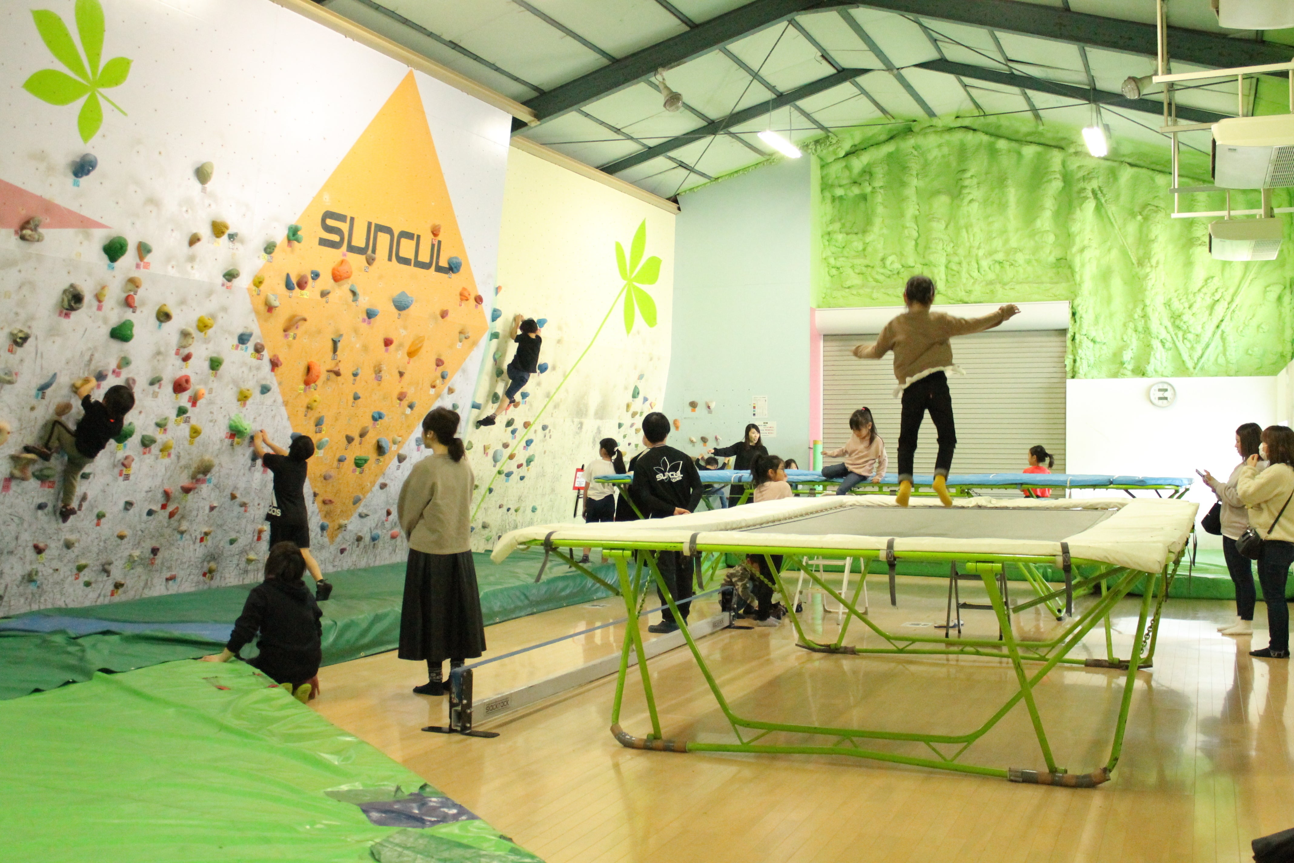 当施設にはボルダリング、リードクライミングの他、トランポリンやスラックラインものご利用が一緒にできるため、クライマーも大歓迎ですが、家族でのご利用も可能ですし、年齢制限がないので幼児からシニアの方まで年齢問わず幅広くご利用していただいております!(※中学生以下はフロアの制限あり)