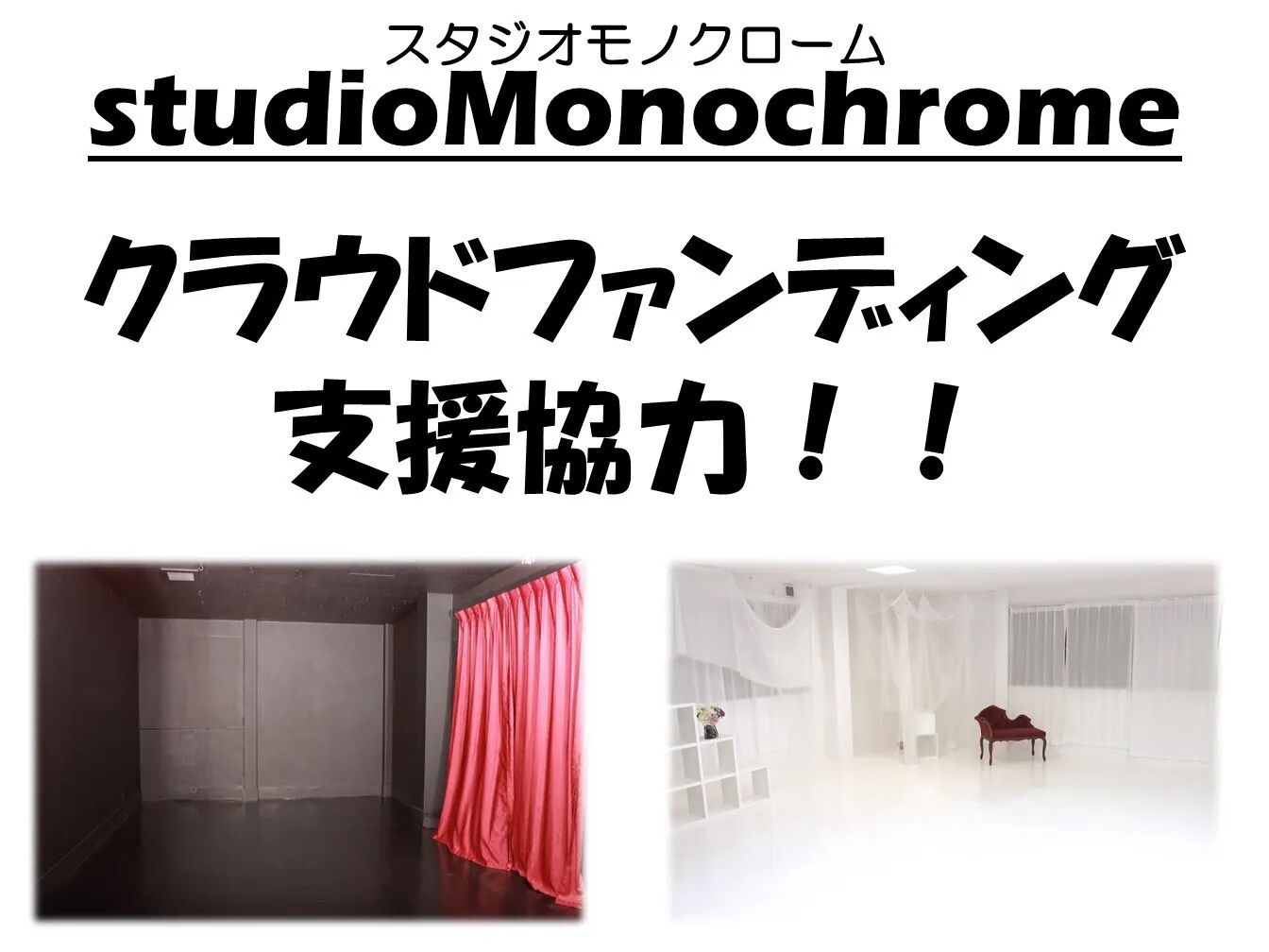 2025/08/04 19:37SUNCULのクラウドファンディング開始して1か月…支援してくれた皆さまありがとうございます!!しかしながら…まだまだ思った金額が集まっておりません…ロングスパンで考えていましたので、集まっても、集まらなくてもご支援のリターンはさせていただき、感謝の意もお伝えしていければと思っていますので、応援、ご支援、拡散よろしくお願いします!!それでもまだまだですので、追加のリターンを考案しました!!!SUNCULの3階にあるスタジオstudioMonochromeのリターンを追加して再度募集を開始予定!申請が下りれば開始しますのでお待ちください!https://studiomonochrome.jimdoweb.com/↑ホームページ白部屋と黒部屋のシンプルな撮影スタジオつい先日7月27日に10周年を迎えました!たくさんご利用いただき感謝の気持ちでいっぱいです…話は変わりますが、スタジオをリターンは撮影サービスやスタジオ利用チケット、記念撮影のサンプル撮影などお得なチケットとなっております!スタジオご利用者はぜひお買い求めいただいて支援いただけたらと思います! もっと見るプロジェクト始動しました!!