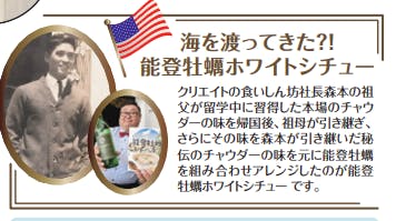 「能登牡蠣チャウダー」という名前でしたが、チャウダーが田舎では全く通用しなくて、