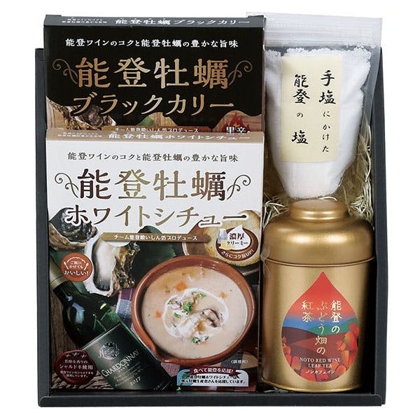 今回は、私森本のチョイスする能登のギフトボックスを返礼品に入れてみました。能登牡蠣ホワイトシチュー いつもこの時期は完売しておりますが、「通販生活」に掲載されて好評につきセットに入れてみました。元々は屋台のメニューとして開発、販売していました。「能登牡蠣チャウダー」という名前でしたが、チャウダーが田舎では全く通用しなくて、屋台では人気メニューでしたが、レトルトにしたらサッパリだったので、思い切って名前を変えました。デザインも変更したらおかげさまで売れるようになり、人気商品としてロングセラーです。ちょっとだけエピソードがあって、1920年代に祖父がアメリカに留学していました。当時は能登から東京の法政大学に行って、アメリカへ渡るなど大変に珍しいことだったと思います。カリフォルニアの本場のチャウダー(ハマグリやアサリなどの2枚貝を使用)をアルバイト先で習ってきたようで、よく家で食べていました。穴水町は牡蠣の産地なので、せっかくなら牡蠣でチャウダーを作ってみようと思い、製造したものです。能登ワインで蒸して、野菜はブーケガルニで煮てあります。食感を残すために野菜はすべて角切りで角が立っています。レトルト食品では煮崩れやすいので、仕上がりには気を付けています。隠し味には、奥能登の伝統調味料のイカのいしるを少し入れています。うまみと深みが出ます。塩は珠洲の揚げ浜式製塩を使用しています。今日は商品の説明を少しだけさせていただきました。ご飯にかけてもOKですが、おすすめは、200ccの牛乳(倍量)を足して小鍋で弱火でグツグツさせて、塩とバターを足すと、2倍量たっぷり食べれます。200ccで物足りない方は400ccにして食べてみてください!