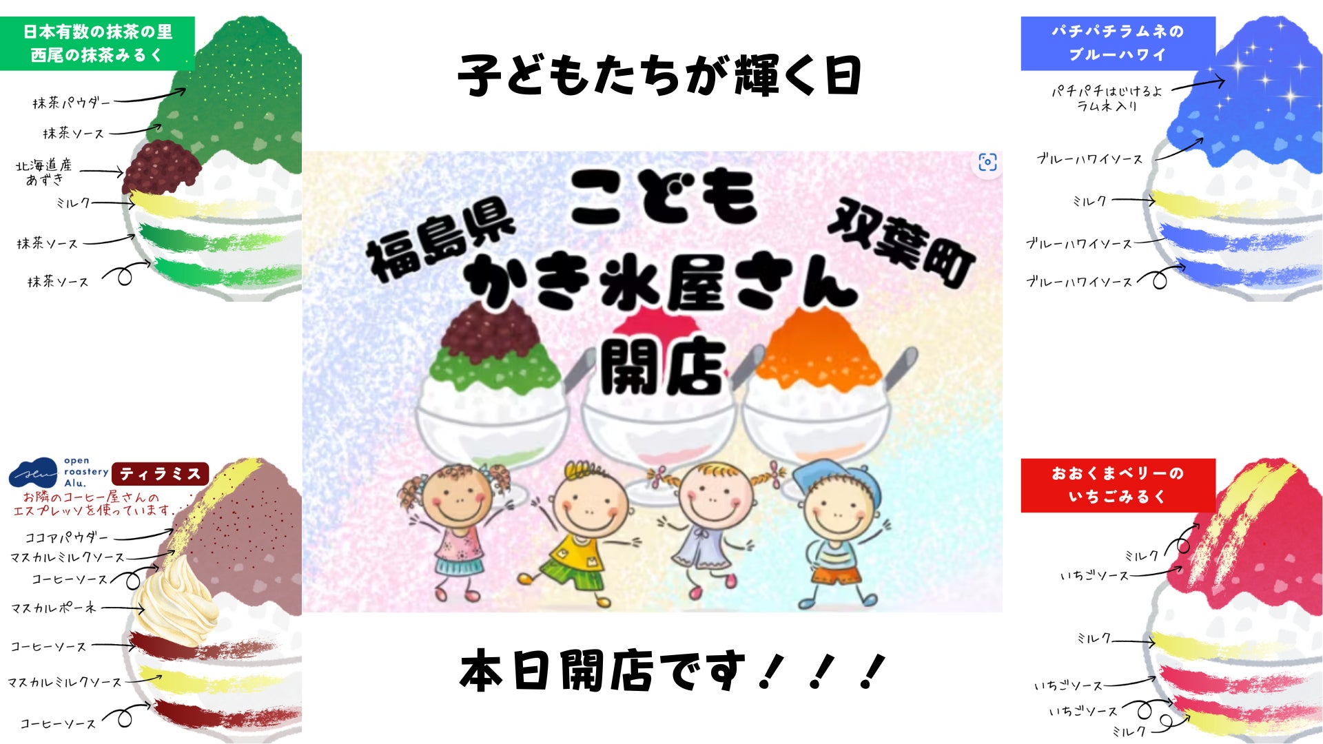 2025/08/11 09:00いよいよ1週間きりました!当日は4種類のメニューになります。大人500円 子供500円です。本格かき氷をぜひ食べに来てください。子どもたちが双葉町で待ってます。 もっと見る