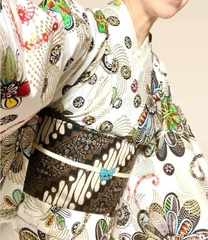 そんな時に、知人から「アフリカの生地で帯なんてどう?」と提案を受けました。私が着物に対して特に強い関心を持っていたわけではありませんでしたが、「アフリカの生地を帯にする」というアイデアには強く惹かれるものがありました。なぜなら、アフリカンプリントに描かれる世界観が、帯という細長いキャンバスに映し出されることにより、絵画のような鑑賞性の高いファッションにつながるのではないかと感じたからです。