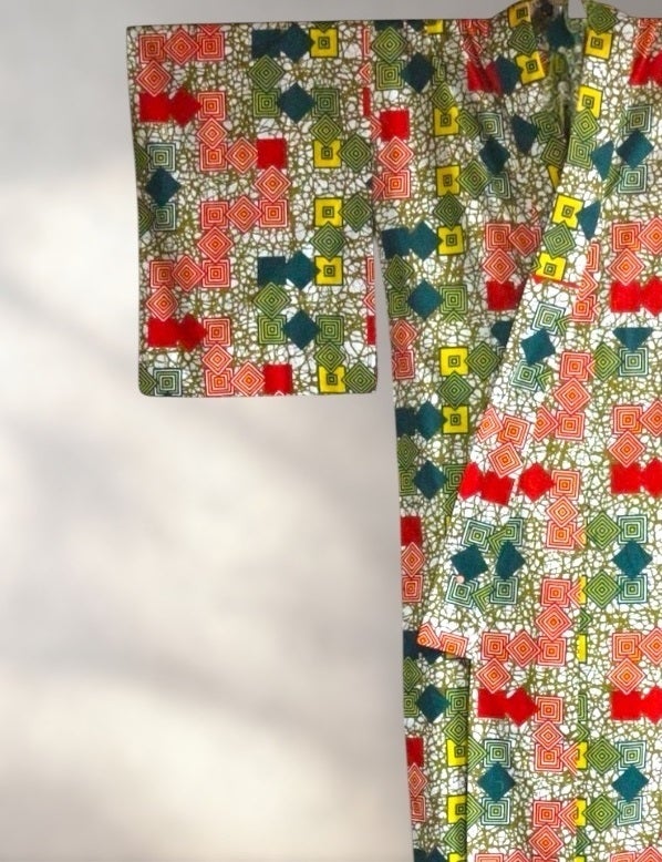 日本の入子升(いれこます)柄のようなGTPの上質をまとうコレクションAdepa Dumas(アデパ ドゥマース)のアフリカ着物は自作第2号
