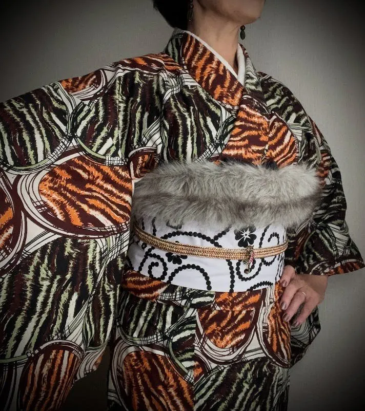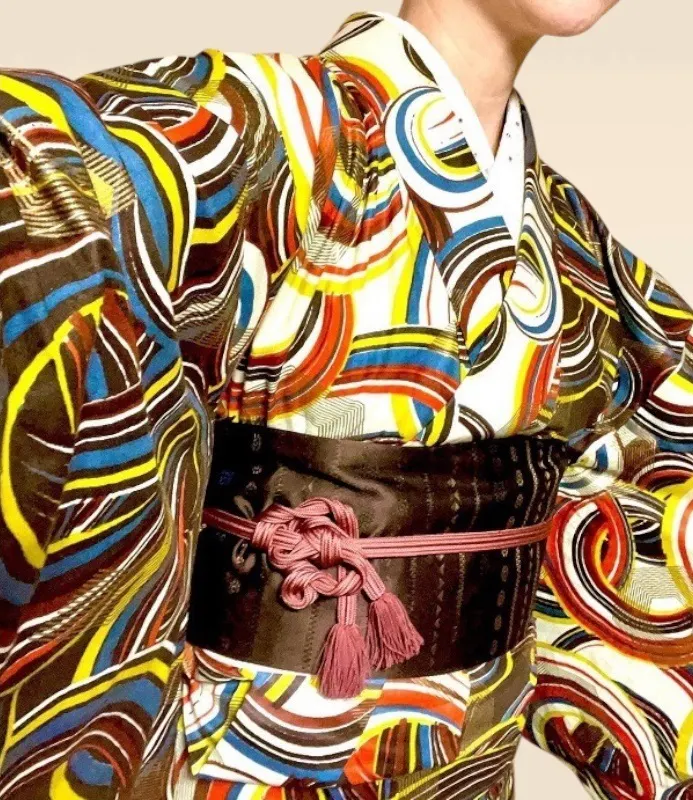 和のようであって、和ではない。その柄の面白さから、着れば「どこの着物?」と声をかけられることも少なくない