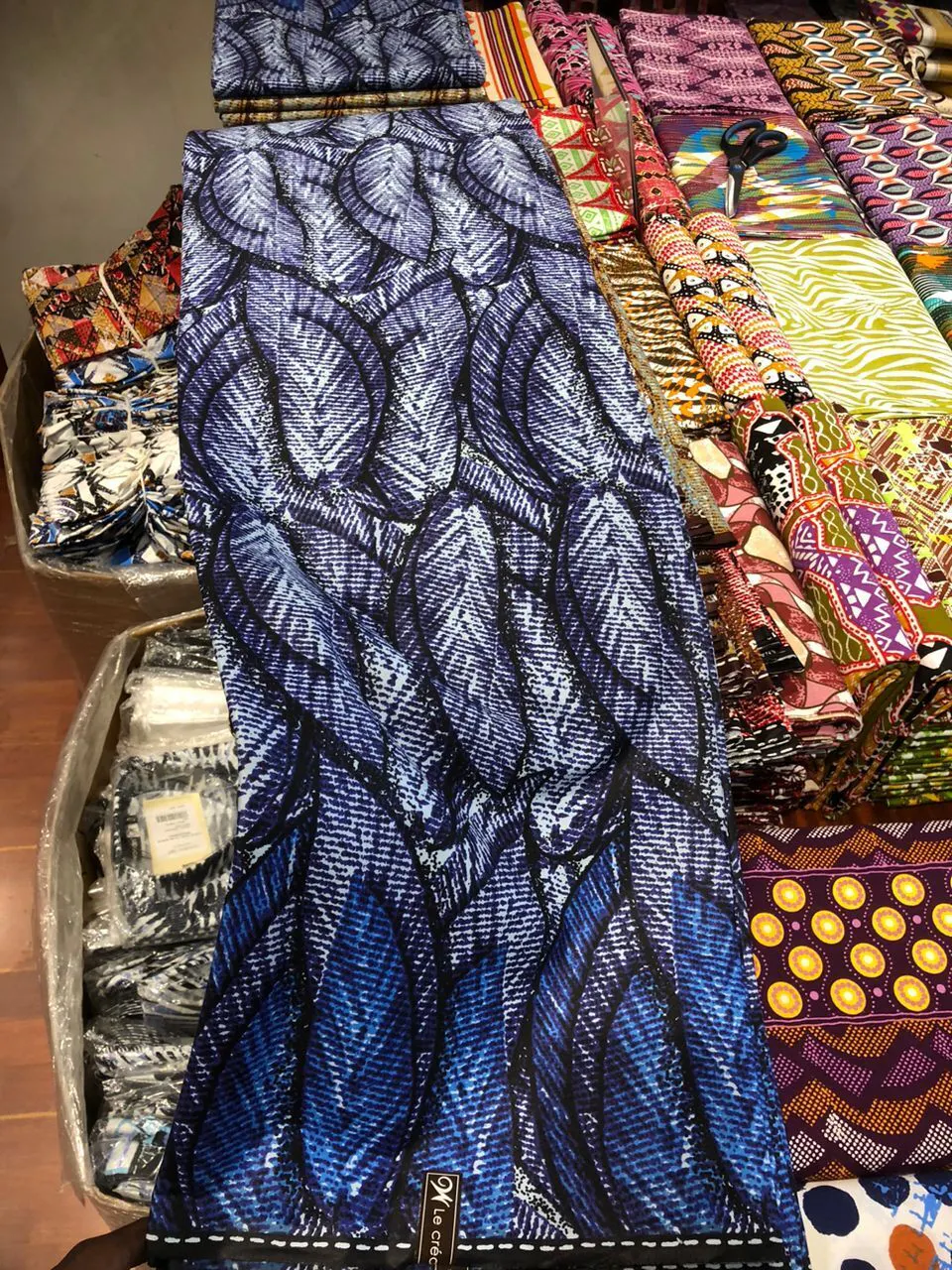 青海波(せいがいは)を想起させるWOODINのアフリカンプリント「Acclamation 称賛」。 各デザインにコレクション名が付いている